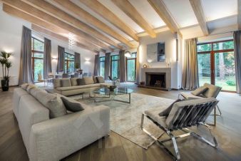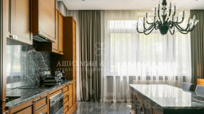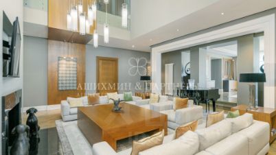 Лот 42657.Современный дом площадью 1176 м2 отличное жилье для солидных людей, имеющих большую семью. 5 спальни с вместительным гардеробными и санузлами, просторная гостиная, черно-белые ванные комнаты обеспечат всем домочадцам комфортную жизнь. Рядом находятся торгово-развлекательные заведения, супермаркеты, образовательный центр, рестораны и фитнес-залы, что позволяет вести за городом полноценную жизнь. Благоустроенная и безопасная территория Особняк расположен на участке в 29 соток в элитном коттеджном поселке Парквиль Жуковка, который находится в 10 км от МКАД и 20 минутах езды от столицы. Придомовая территория коттеджа в модерновом стиле декорирована молодыми елями и редкими деревьями, подстриженными кустарниками. Особенности дома: фасад здания отделан гранитной плиткой, что придает постройке дорогой и статусный вид,дом реализуется в стадии под ключ без мебели, поэтому владелец сможет выбрать и расставить ее на собственный вкус,для обслуживающего персонала предназначено отдельное помещение. Благодаря большим витражным окнам, террасе можно наслаждаться окружающей природой.1 этаж: бассейн, винная комната, гостиная, кинотеатр, кладовая, кухня - 2шт., массажный кабинет, постирочная, прихожая, санузел - 2шт., сауна, столовая, техническое помещение, холл2 этаж: гардеробная, санузел, спальня с гардеробной и санузлом - 5шт., терраса - 2шт.Элитный поселок ''Парквилль'', площадью 40 га, расположился на Рублево-Успенском шоссе Одинцовского района на берегу Москва реки, всего в 10 км от МКАД. Вмещает 57 домов и выгодно сочетается с живописными пейзажами и богатой растительностью.Присутствие аллей, фонтанов, извилистых дорожек, величественной триумфальной арки, установленной на въезде в поселок, придают ему больше красок. Культурно-исторические объекты, разместившиеся неподалеку ''Парквилль'', также делают комплекс популярным и востребованным.Чем удивит?Внешне это поселение напоминает уютные и респектабельные улицы Лондона. Обусловлено это английским стилем, в котором выполнены поместья и дворы. Присутствуют все необходимые условия для занятий спортом, ловли рыбы, прогулок по реке. Невозможно не упомянуть об оборудованном пляже и причале для водного транспорта. Семьи с детьми будут приятно удивлены великолепными детскими площадками.