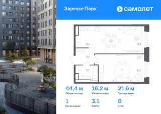 Строим кварталы для жизни с заботой о будущем. Предлагается 1-комнатная квартира бизнес-класса 44,4 кв.м в корпусе 3.1 на 8 этаже, в ЖК ''Заречье Парк''Квартира с чистовой отделкой. Доступность дополнительных опций уточняйте у застройщика.Приобрести квартиру возможно по специальным акциям от застройщика, с текущими условиями акций можно ознакомиться в блоке ''Акций''.Цена динамическая и может отличаться, уточняйте актуальность у застройщика.''Заречье Парк'' — жилой комплекс бизнес-класса рядом с Мещерским парком и инновационным центром ''Сколково''. Элитный квартал в голландском стиле создан по авторскому архитектурному проекту. Из окон открывается живописный вид на парк. Приватные дворы закрыты от машин, а на зеленой территории — разнообразные места для отдыха, игр и спорта. Жителям доступны своя поликлиника, школа и детский сад. Все квартиры — с готовой отделкой в нейтральной гамме.