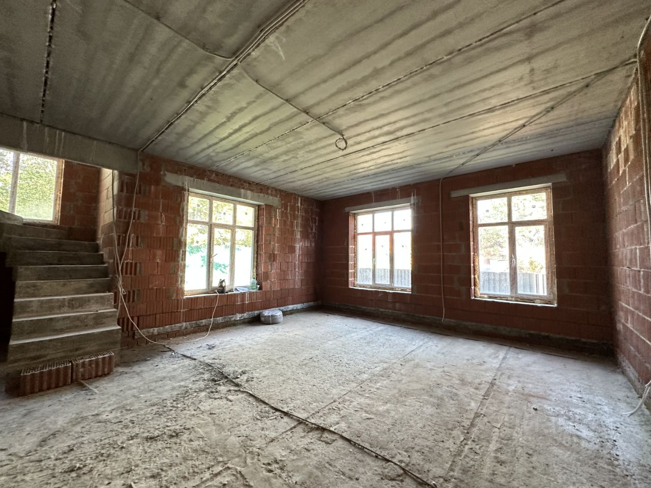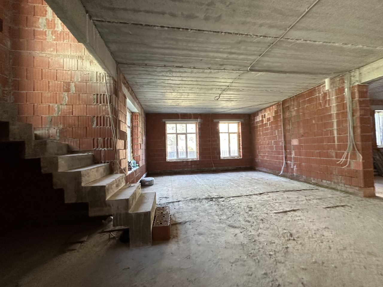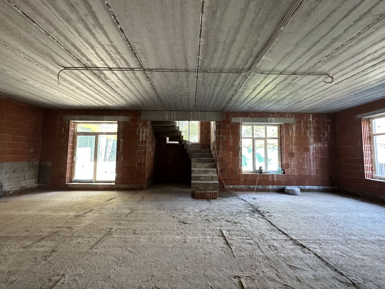 1эт: гостиная-кухня (75м), гостевая комната, санузел, котельная, постирочная.