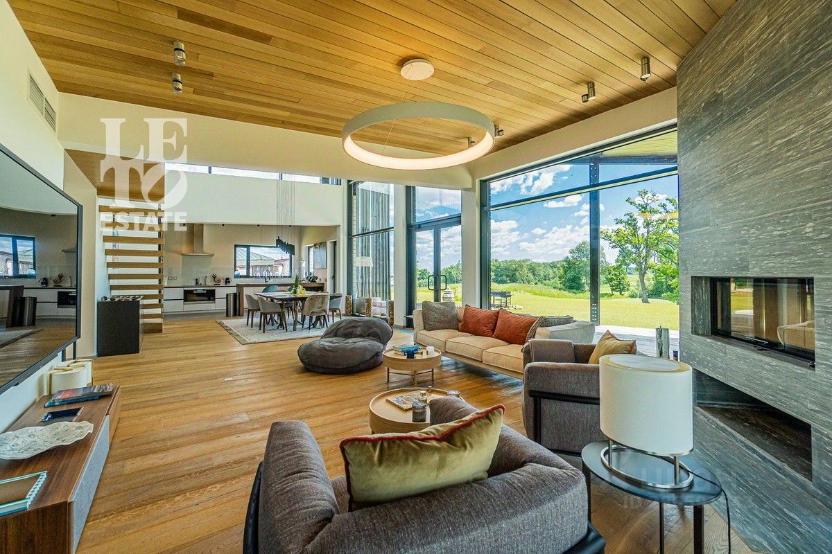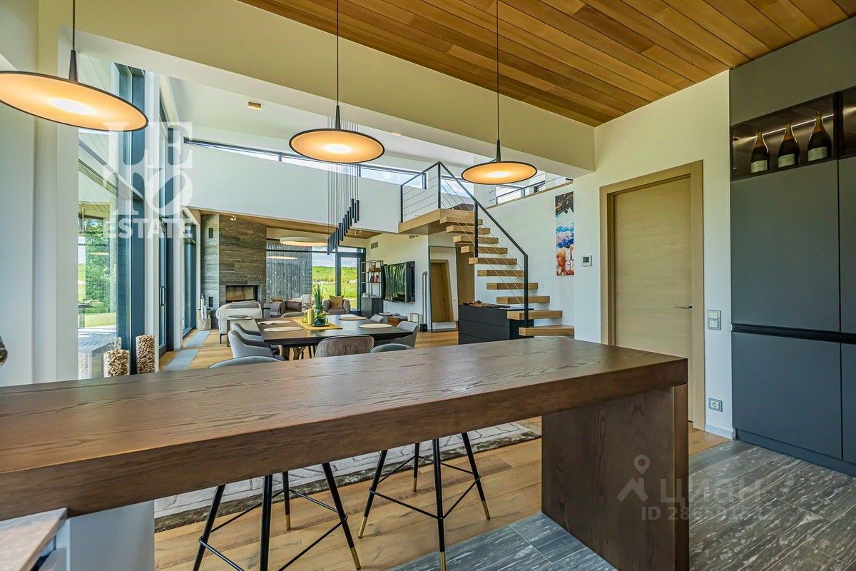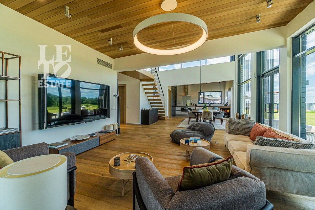 Арт. 34970467 Продаётся новый, современный, дом в скандинавском эко-стиле из клееного бруса с панорамным остеклением и шикарным видом на гольф-поле в коттеджном поселке Villa Links, построенный на территории гольф-курорта Links National Golf Club, расположенного в 65 км от МКАД по Рогачевскому шоссе. Общая площадь дома - 350 м2, площадь участка 32 сотки. В доме имеются три спальни с индивидуальными с/у. Есть мезонин (возможность организовать 4 спальню на мезонине или сделать кабинет с панорамным видом на гольф-поле). Также в доме расположены гардероб, гостевой с/у, склад, комната для персонала, отдельная постирочная, отдельная котельная. В дома выполнена дизайнерская отделка с использованием дорогих высококачественных материалов: натуральный швейцарский камень, паркет. Мебель BoСoncept, Baxter, Poliform и другая на заказ. Кухня и вся техника Miele, сантехника Duravit, Villeroy&Bosch, Dorn Brach, Grohe. Итальянское премиальное освещение. Просторная терраса, с зоной барбекю, располагает к полноценному отдыху.