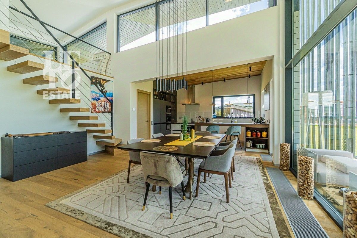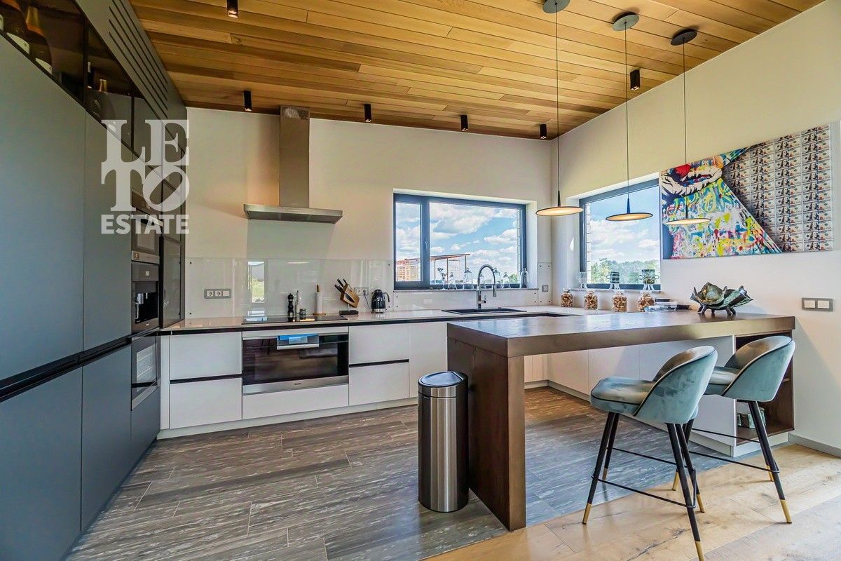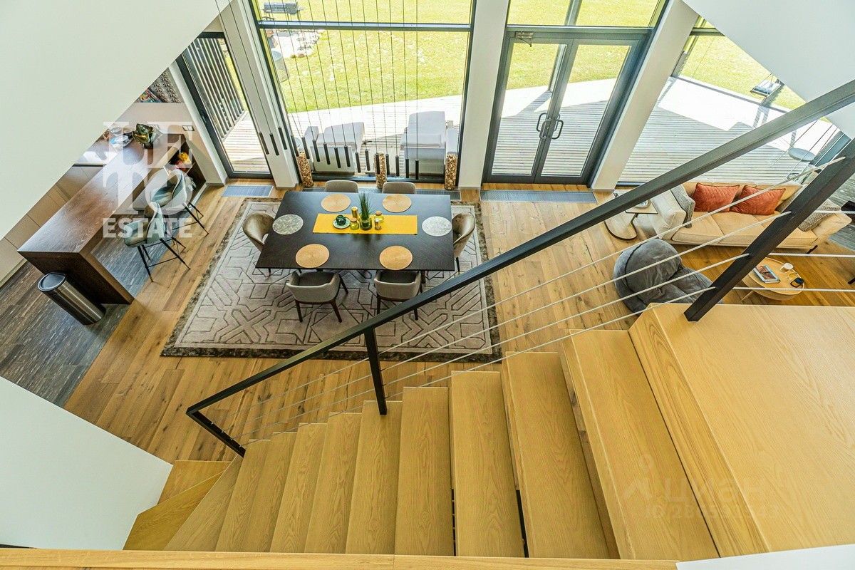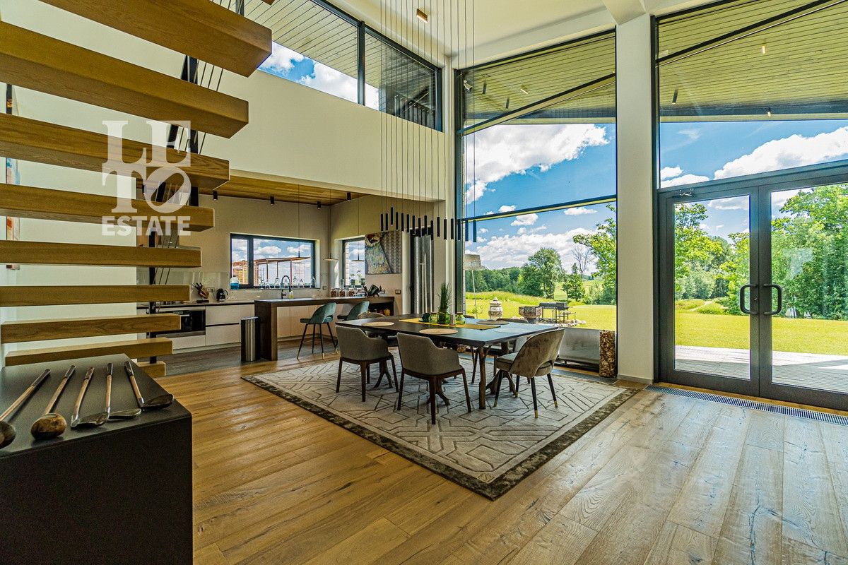Арт. 34970467 Продаётся новый, современный, дом в скандинавском эко-стиле из клееного бруса с панорамным остеклением и шикарным видом на гольф-поле в коттеджном поселке Villa Links, построенный на территории гольф-курорта Links National Golf Club, расположенного в 65 км от МКАД по Рогачевскому шоссе. Общая площадь дома - 350 м2, площадь участка 32 сотки. В доме имеются три спальни с индивидуальными с/у. Есть мезонин (возможность организовать 4 спальню на мезонине или сделать кабинет с панорамным видом на гольф-поле). Также в доме расположены гардероб, гостевой с/у, склад, комната для персонала, отдельная постирочная, отдельная котельная. В дома выполнена дизайнерская отделка с использованием дорогих высококачественных материалов: натуральный швейцарский камень, паркет. Мебель BoСoncept, Baxter, Poliform и другая на заказ. Кухня и вся техника Miele, сантехника Duravit, Villeroy&Bosch, Dorn Brach, Grohe. Итальянское премиальное освещение. Просторная терраса, с зоной барбекю, располагает к полноценному отдыху.