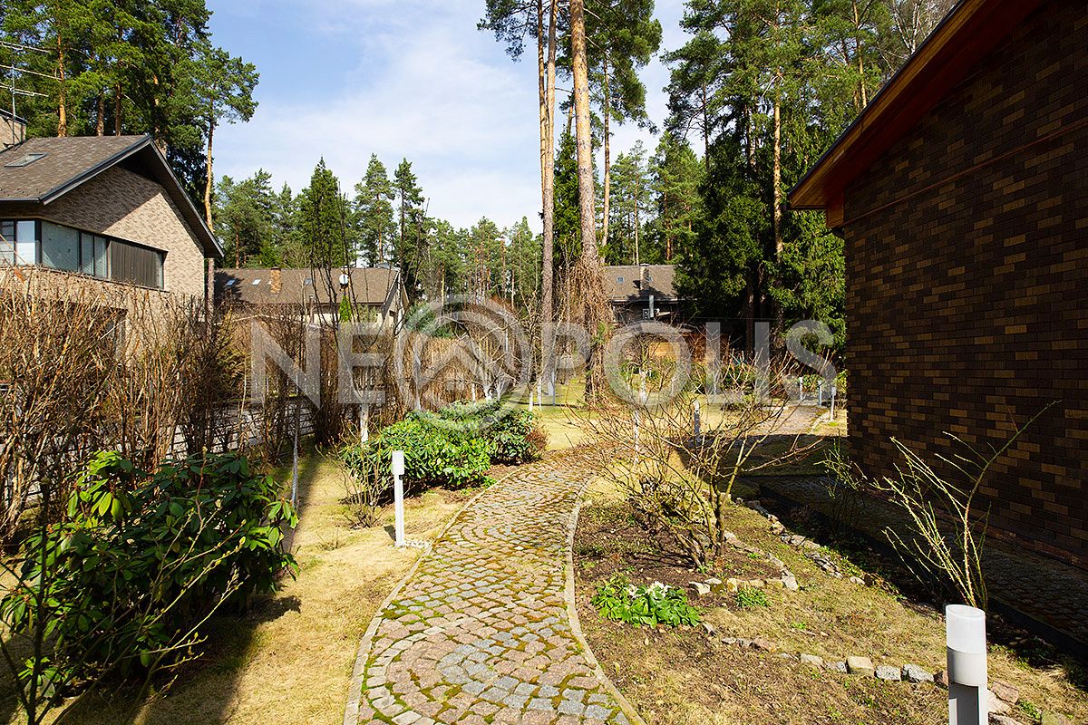 Просторный участок с корабельными соснами, декоративными и плодовыми деревьями. На участке высажен газон, прогулочные дорожки вымощены брусчаткой, разведено освещение участка. Организована парковка на 2 авто.