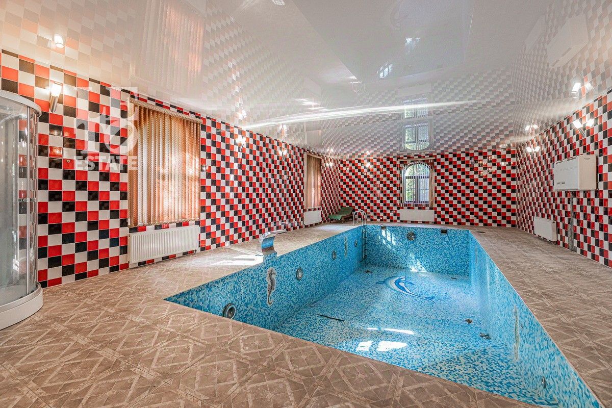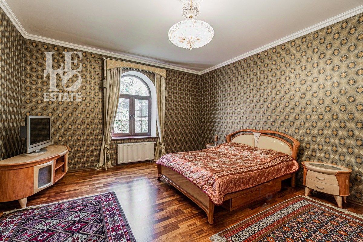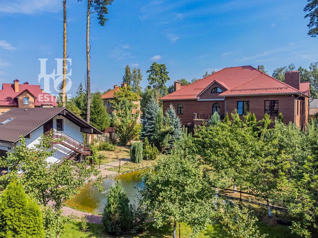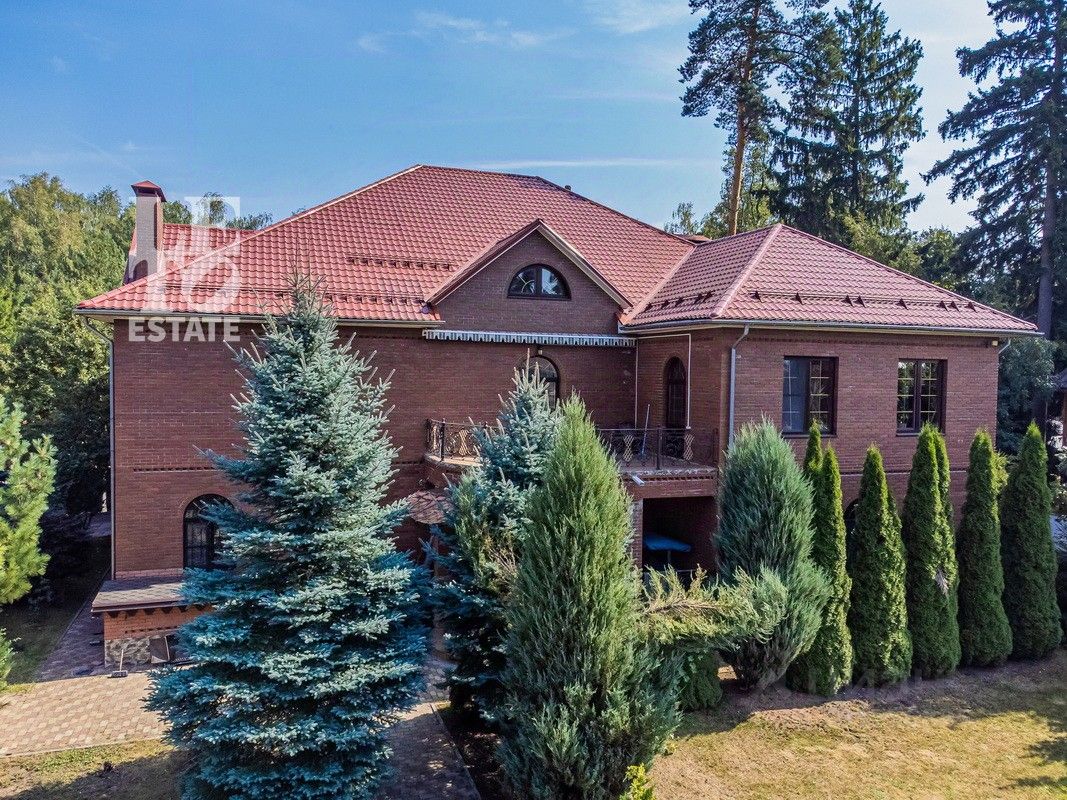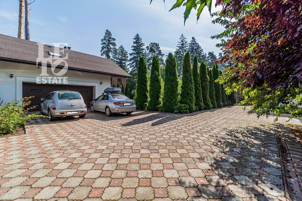 Дом 2013 года постройки, состоит из двух этажей, а также цокольного, полностью меблирован и готов к проживанию, ремонт выполнен из дорогих, высококачественных материалов. Центром притяжения в доме, является большой холл с массивной лестницей из кавказского дуба и вторым светом. Также дом располагает пятью спальнями, зимним садом с зоной барбекю и террасой, зоной СПА с бассейном и сауной, в мансарде расположен спортзал. Дом стоит на монолитно-ленточном фундаменте глубиной 2,4 м. В стоимость входит отдельно стоящее здание с гаражом на первом этаже и квартирой для персонала на втором этаже. Несколько уровней подготовки и очистки воды. Все коммуникации центральные, отопление газовым котлом, мощностью 60 кВт. На участке выполнен ландшафтный дизайн, дорожки вымощены тротуарной плиткой, высажены плодовые, а также хвойные деревья, дубы, кустарники, цветы, виноград. Украшает сад пруд с фонтаном и рыбками. Поселок под круглосуточной охраной. До Пироговского водохранилища 4 км.