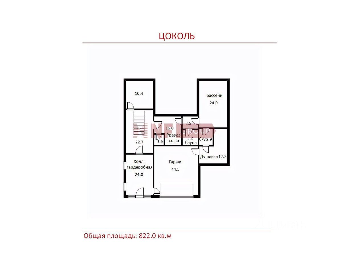 Общая площадь822 м2