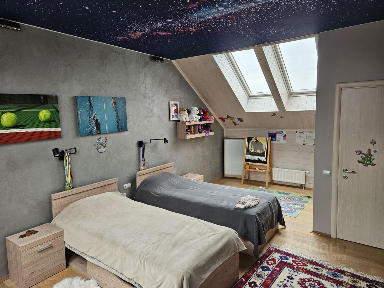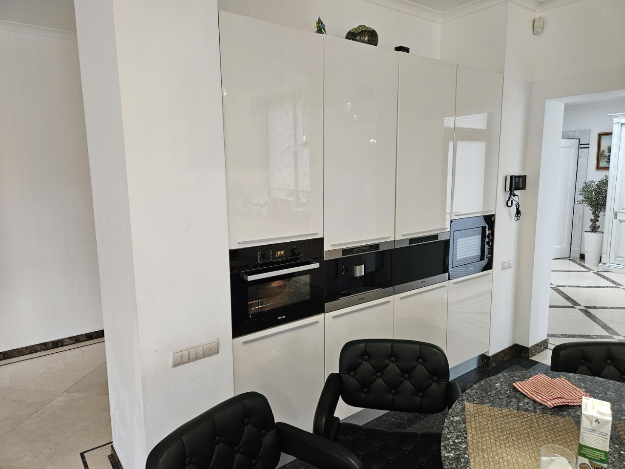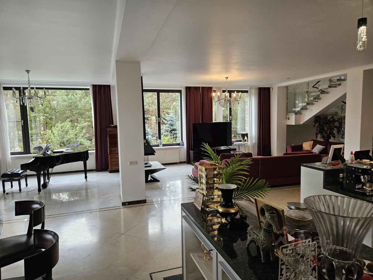Планировка: 1 этаж: прихожая, кухня/гостиная, кабинет/спальня, удобный выход на крытую террасу, c/у, комната персонала, с/у, котельная, выход в гараж. 2 этаж: мастер/спальня с ванной комнатой и гардеробной, балкон, 2 спальни, с\у, постирочная. Мансарда: спальня, c/у, комната свободного назначения, большая терраса.