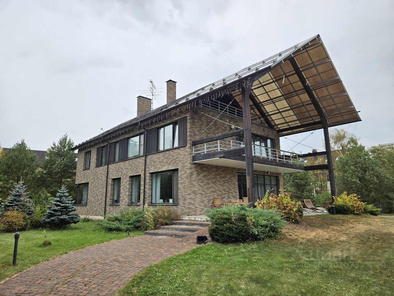 Кирпичный дом в коттеджном поселке'' Клуб-2071''. В отделке использованы дорогие и качественные материалы. Большая площадь остекления, тройные стеклопакеты, подогреваемые полы. Фасад дома отделан клинкерным кирпичем и деревом. В доме гараж на 2 автомобиля.