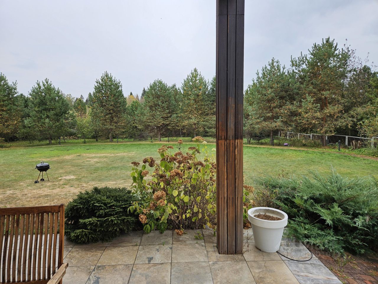 Большой участок (в пользовании 30 соток, примыкает к лесу) с взрослыми лесными деревьями.