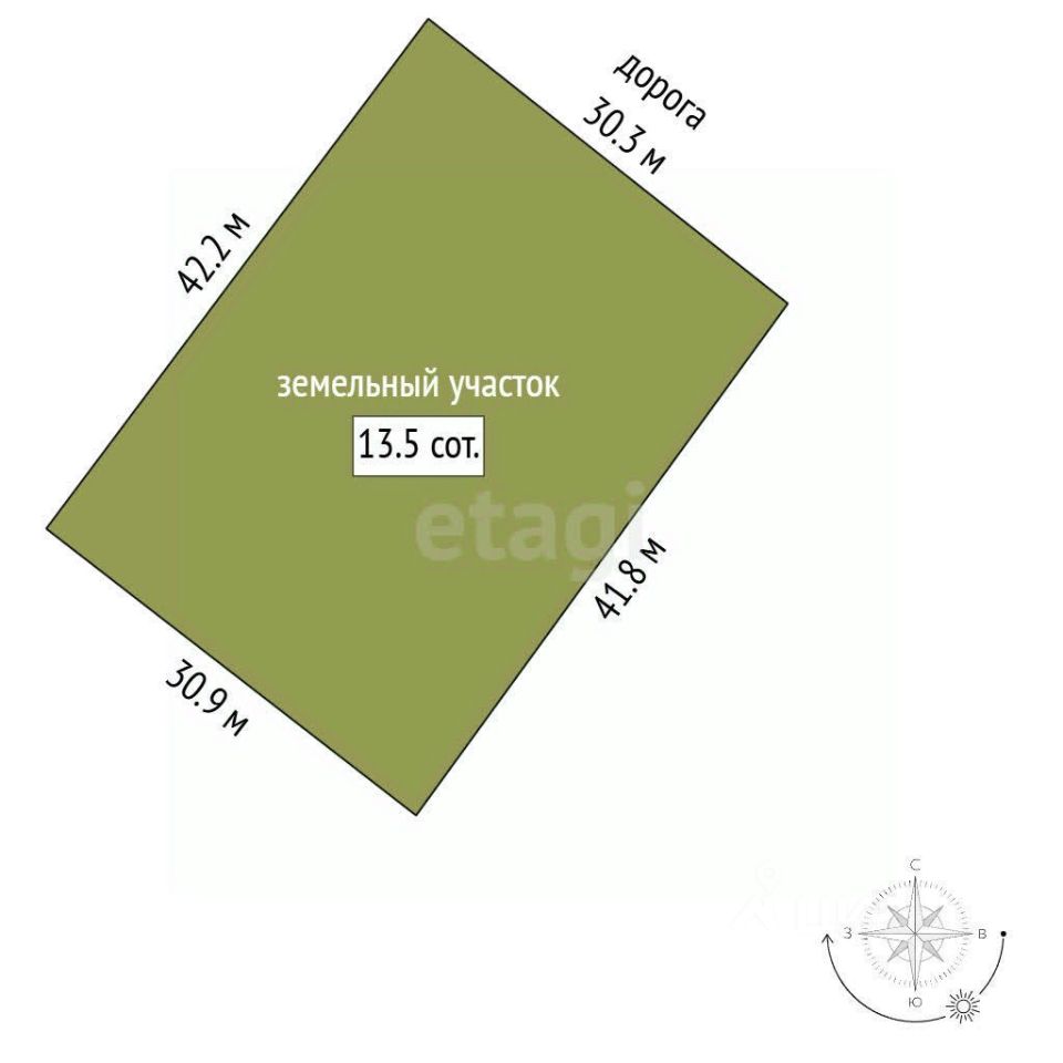 Номер в базе: 974440. Участок правильной формы 13.5 сот.