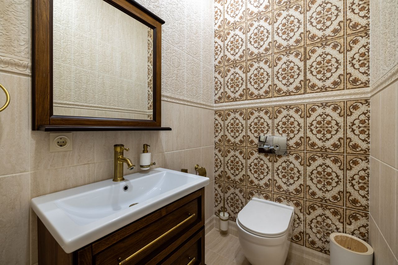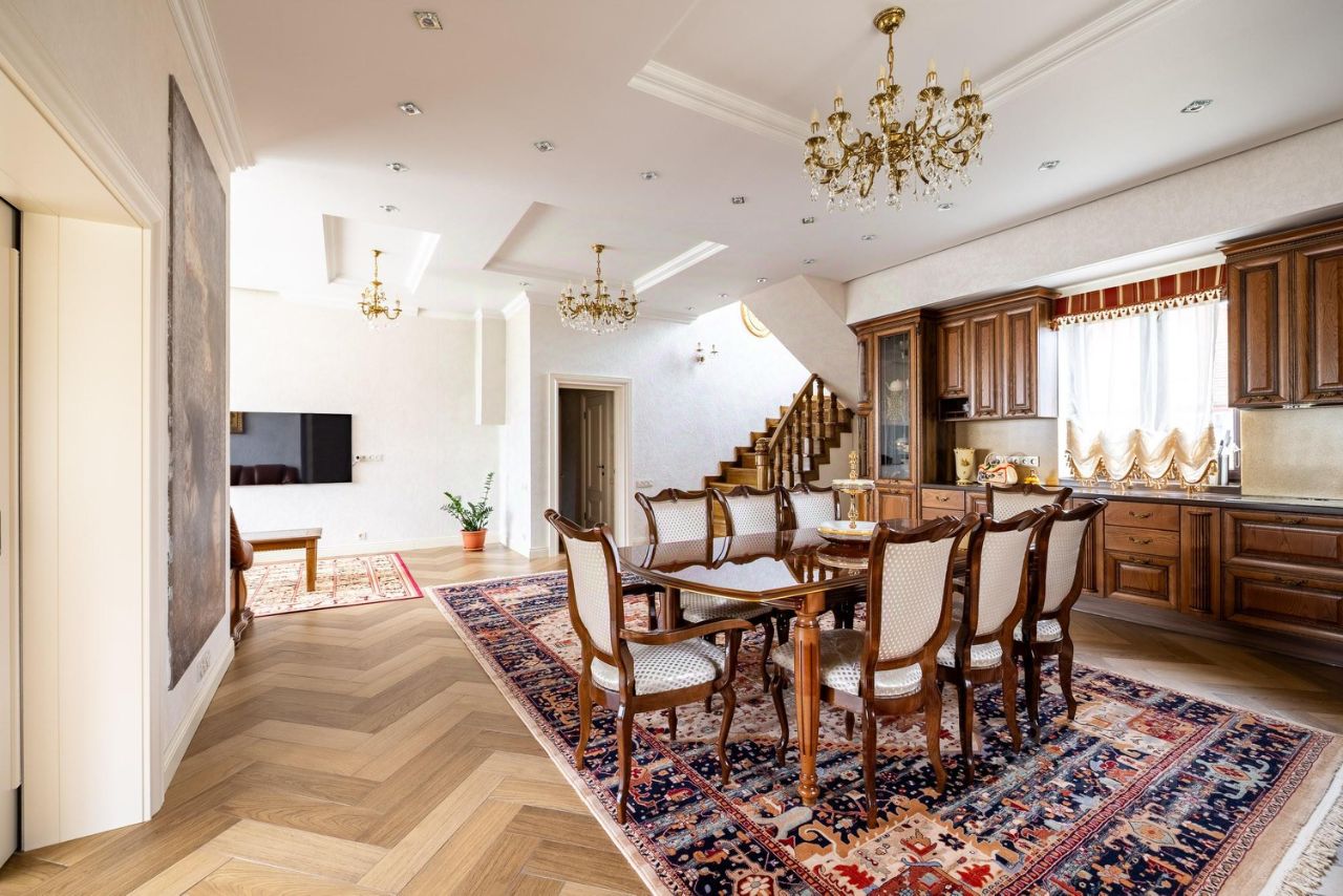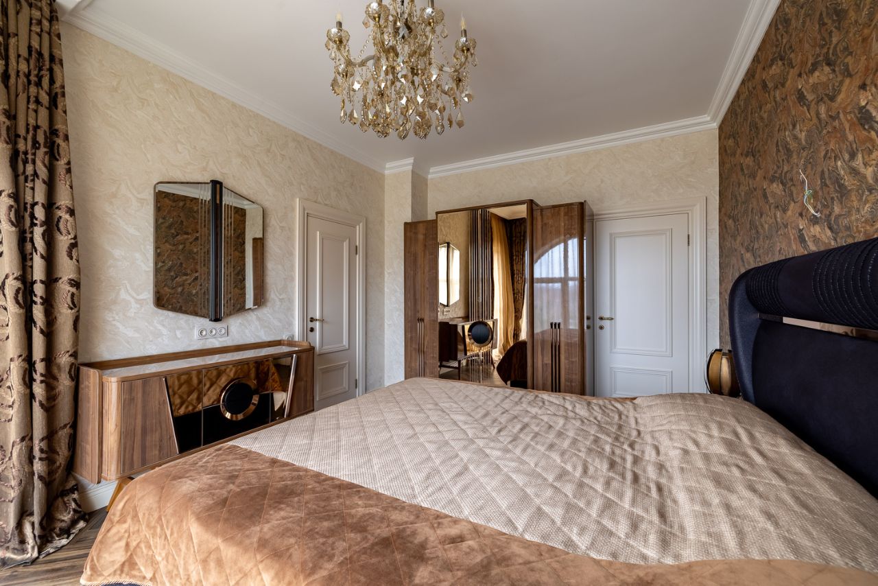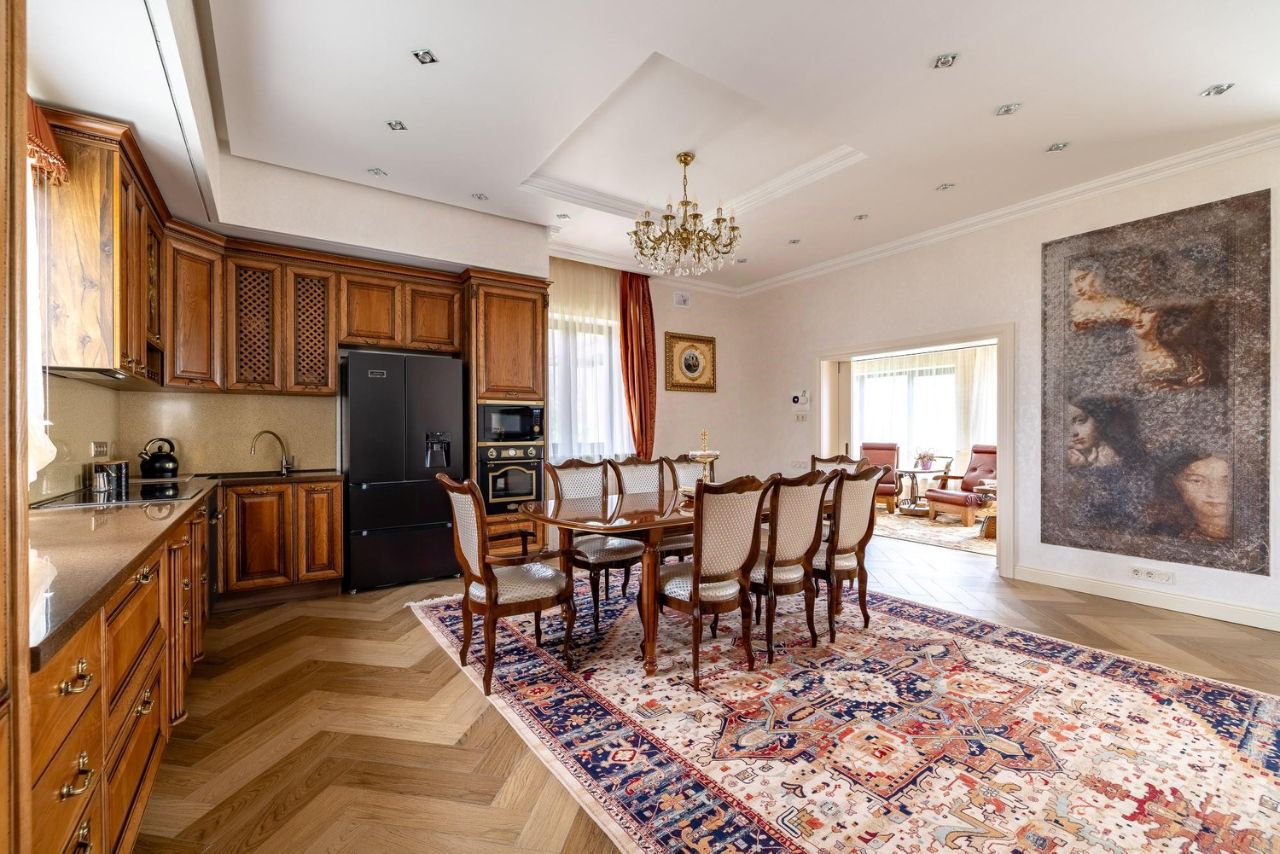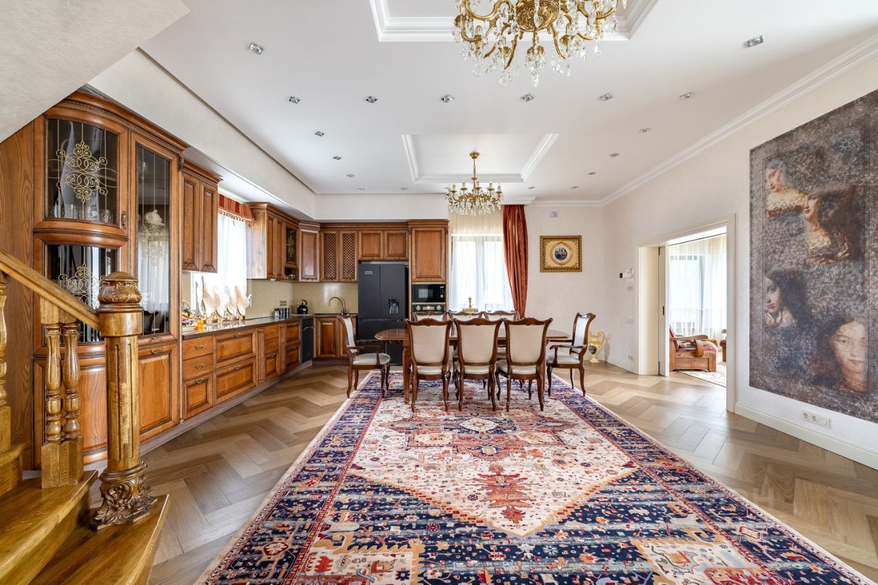 В доме произведен дорогостоящий ремонт, в котором продумано все до мелочей: стены покрыты декоративной штукатуркой и обоями Trussardi, качественная электрика с проходными выключателями и шикарными люстрами, на полу инженерная доска и керамогранит, межкомнатные двери из массива с Итальянской фурнитурой, удобная, безопасная лестница из дуба. Мебель выполнена по индивидуальному заказу, из ценных пород дерева, бытовая техника премиальных брендов (Kaiser и Bosh).