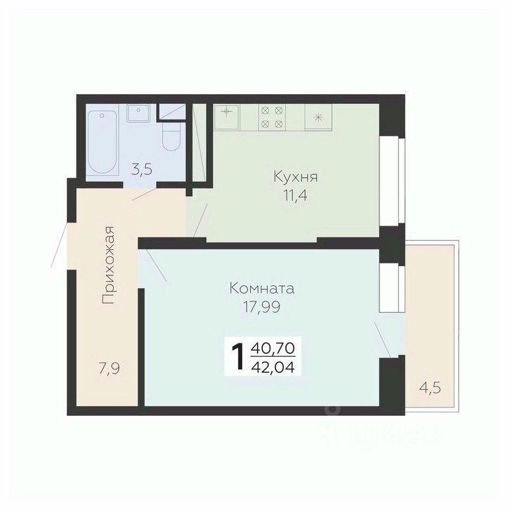 Общая площадь42,04 м2