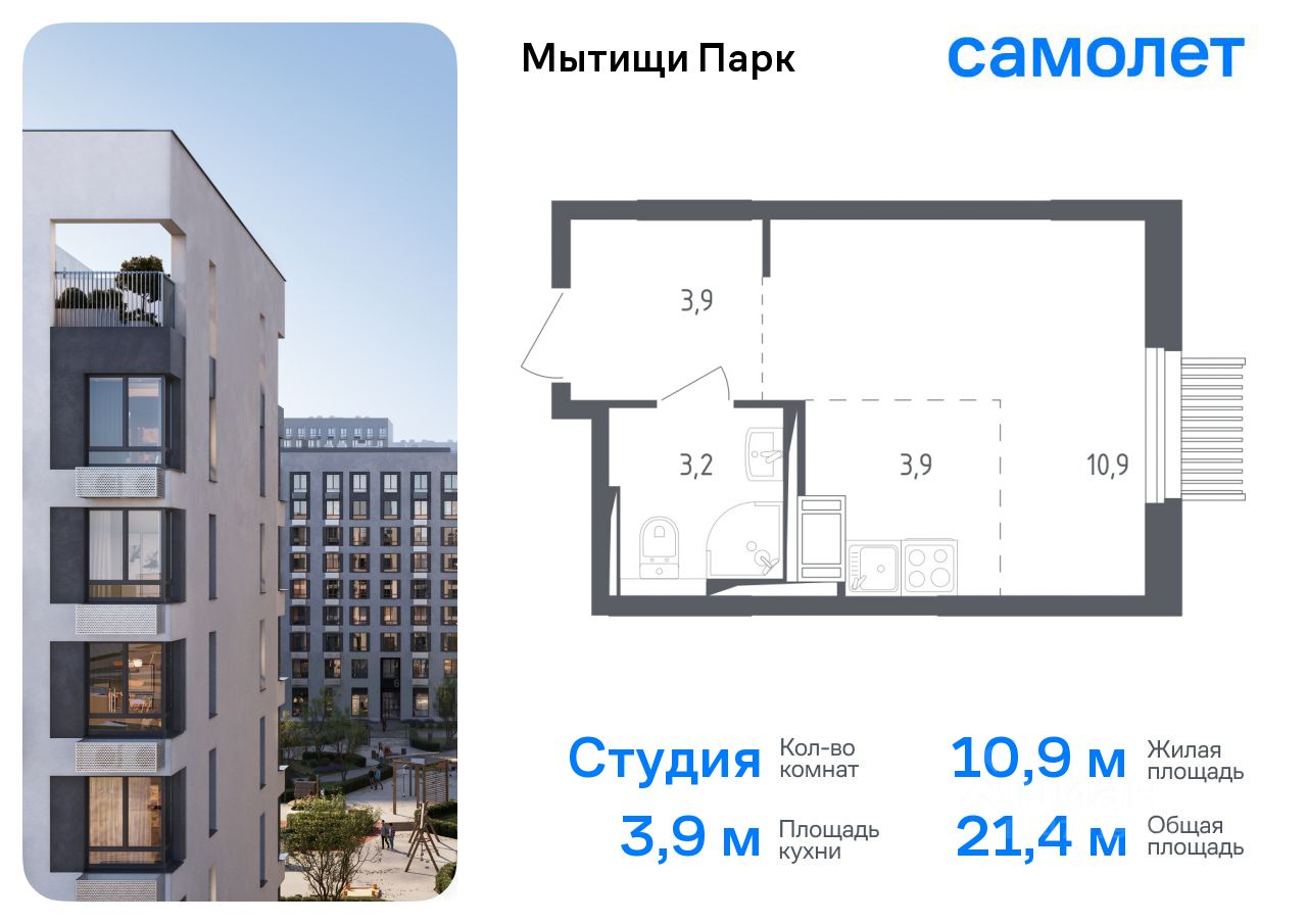 Предлагается квартира студия комфорт-класса 21,4 кв.м в корпусе 4 на 3 этаже, в ЖК ''Мытищи Парк'' Квартира с чистовой отделкой. Доступность дополнительных опций уточняйте у застройщика.