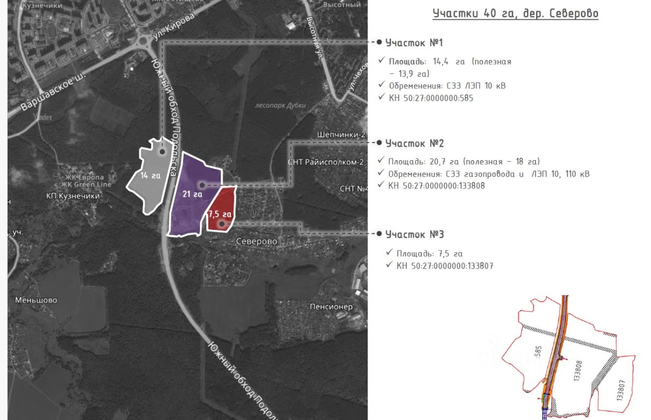 Площадь 40 гектар, земли населенных пунктов, го. Подольск.