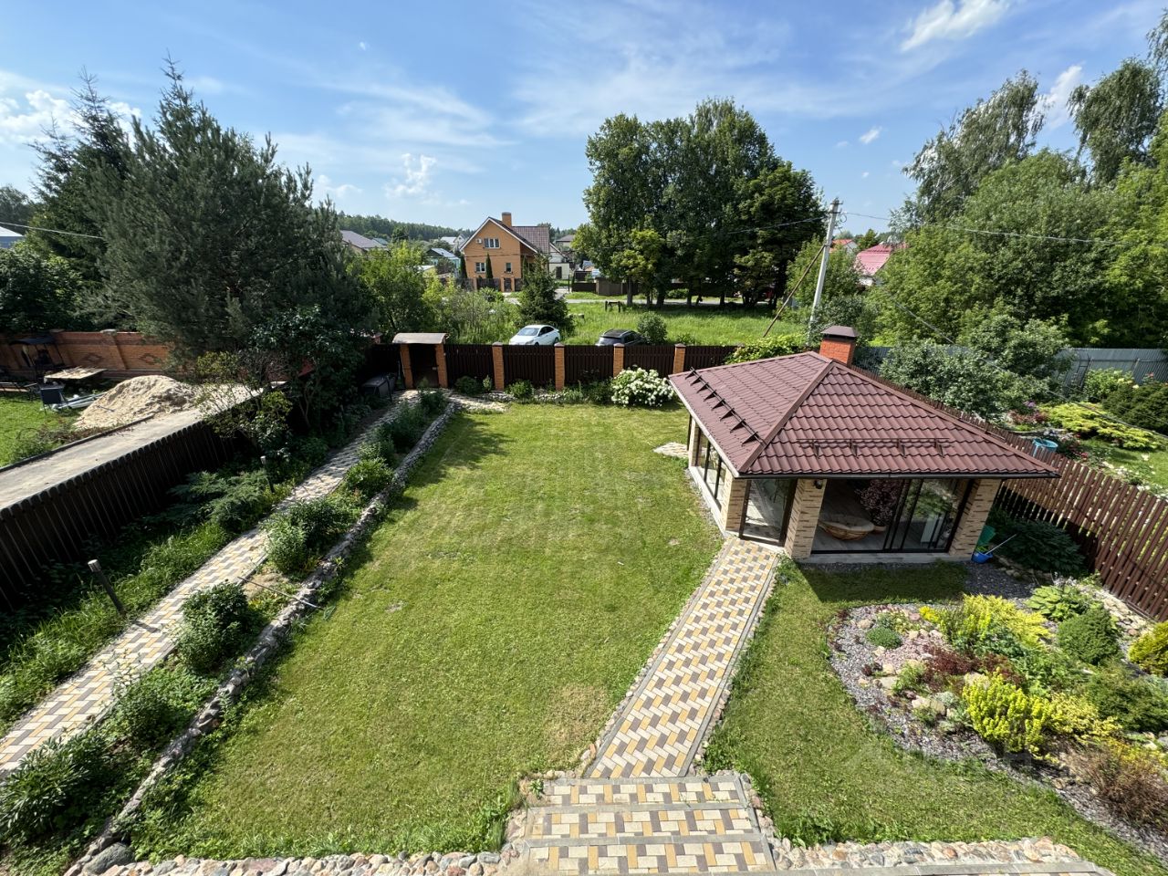 Коттедж площадью 318 м2 в городской черте Ногинска, отличное месторасположение. 1-й этаж : кухня 13,8 м2, гостинная 36.8 м2, холл 6.2 м2, санузел 6.0 м2, зал 17.1 м2, две подсобки. Состояние местами требует ремонта. 2-й этаж :4 спальни - 27.4+18.6+22.3+10.6 м2, коридор 13.9 м2 , санузел 1.6 м2, балкон 16.7 м2 - с отличным видом. Состояние хорошее, жилое. 3-й этаж -открытая мансарда, без отделки. Подвал под всем домом, котел и водоочистка в нем.Конструктив дома: стены кирпичная кладка, ж/б плиты перекрытия, фундаментные блоки, крыша - металлочерепица. Магистральные коммуникации: газ, водопровод, электричество. Система водоочистки. Канализация - септик. 5 кондиционеров в доме. К заднему фасаду дома сделана пристройка (был необходим лифт), без отделки. Можно дополнительно обустроить как жилую площадь, есть дизайн проект. Участок 7.9 соток, правильной формы, ухожен, много посадок, по факту больше на 2 сотки. Тротуарные дорожки обновлены 2 года назад. Подъезд с двух сторон, соседи так же с двух сторон, много места перед участком (большой плюс), видеонаблюдение. Соседи доброжелательные, все построились, живут постоянно. Школа и детсад - 5 минут на машине. Рядом лес, река, остановка. До магазина 800 м. На участке новая шикарная беседка-барбекю (35 м2). Застеклена. Отделана ценными породами дерева. Так же есть кирпичный гараж (71.8 м2) на 2 авто с автоматическими воротами, + баня (печь Harvia) с комнатой отдыха. Один собственник. В договоре укажем полную стоимость, окажем помощь в получении ипотеки. Оперативный показ. Риэлторские услуги оказываются по стандартам Российской Гильдии Риэлторов. Торг на месте. Звоните, обо всем договоримся !