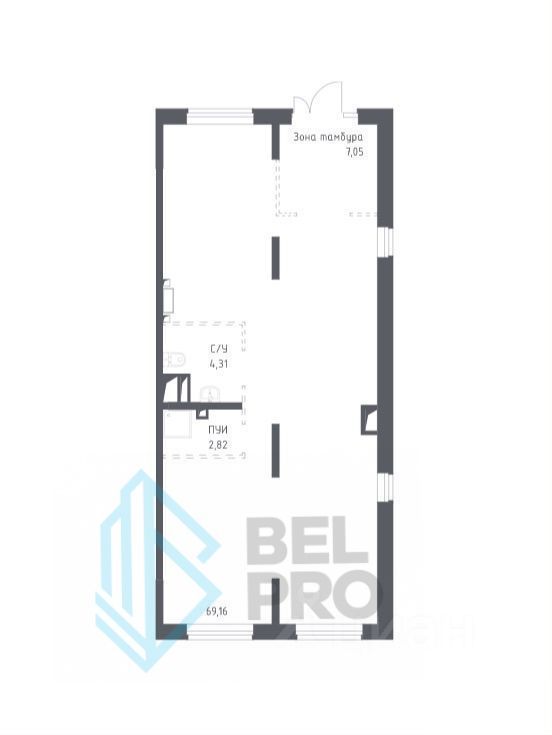 Витринное остекление, отдельная входная группа. Предусмотрено место для размещения рекламной вывески.