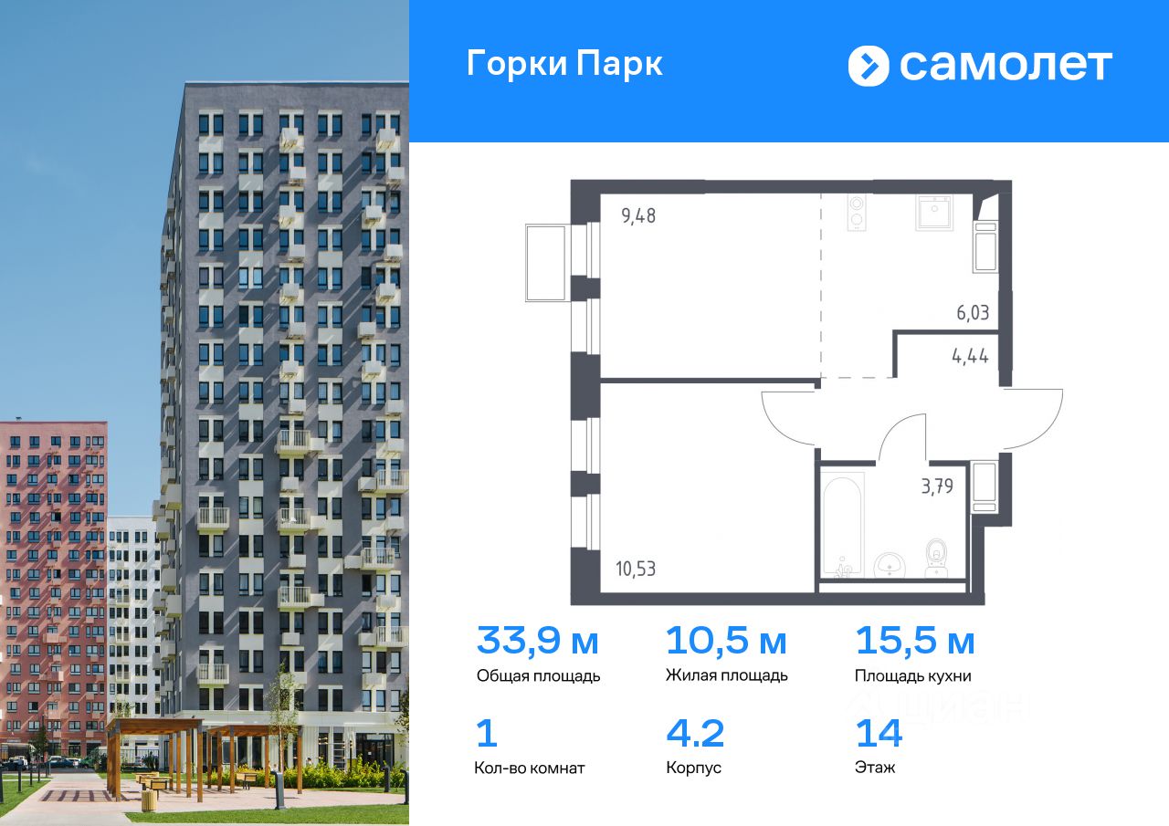 Предлагается 1-комнатная квартира комфорт-класса 33,9 кв.м в корпусе 4.2 на 14 этаже, в ЖК ''Горки Парк'' Квартира с чистовой отделкой. Доступность дополнительных опций уточняйте у застройщика.