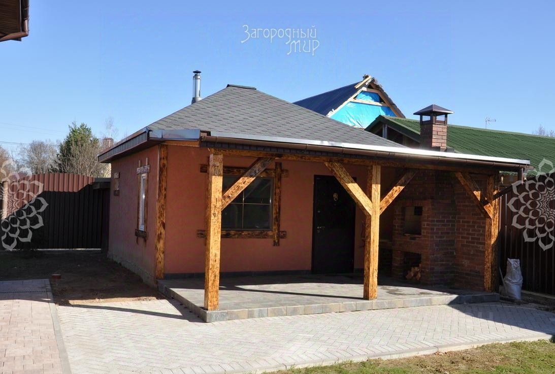 Участок 9,62 сот. ИЖС: баня 66 кв.м + терраса с зоной барбекю, навес для 2 автомобилей, газон. Фасадная часть перед домом выложена декоративной плиткой с освещением. Участок огорожен забором их металлопрофиля с откатными электрическими воротами.
