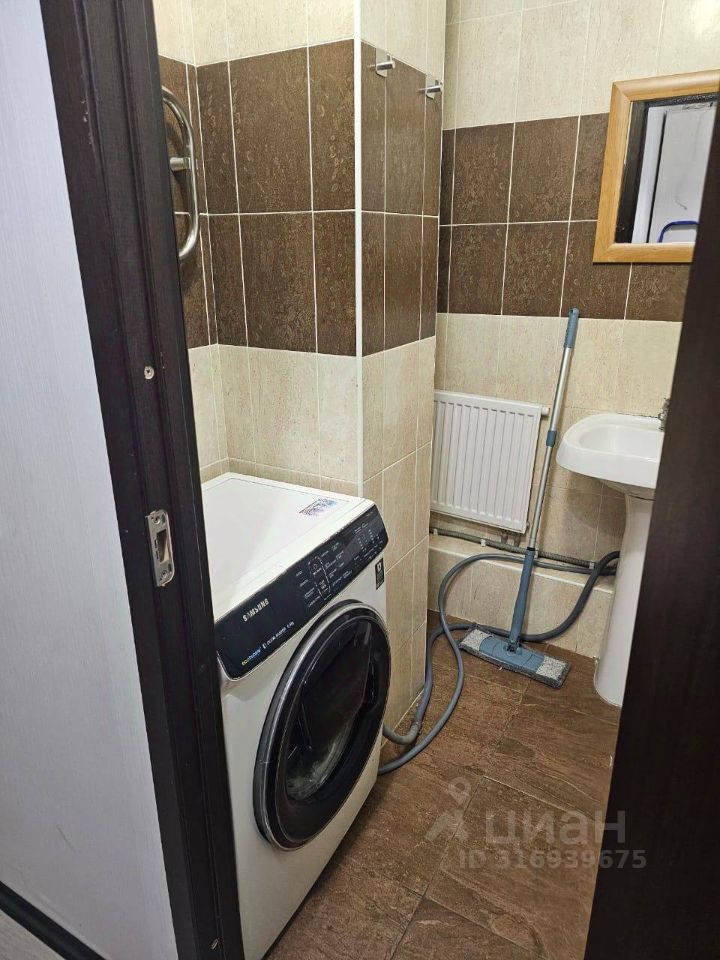 Ванная: Сама ванная, Полотенцесушитель, Зеркало, Раковина, Стиральная машина.