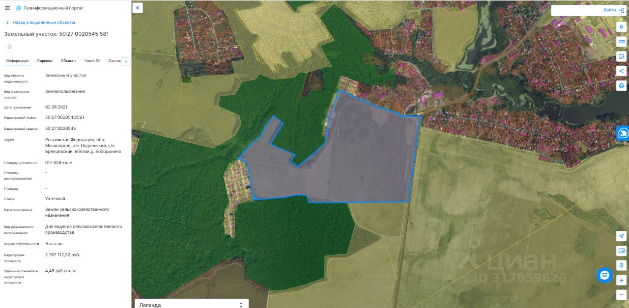 Продается земельный участок площадью 61,76 ГА, расположенный в 11 км от МКАД по Симферопольскому шоссе. Земельный участок с кадастровым номер: 50:27:0020545:581.