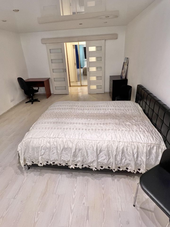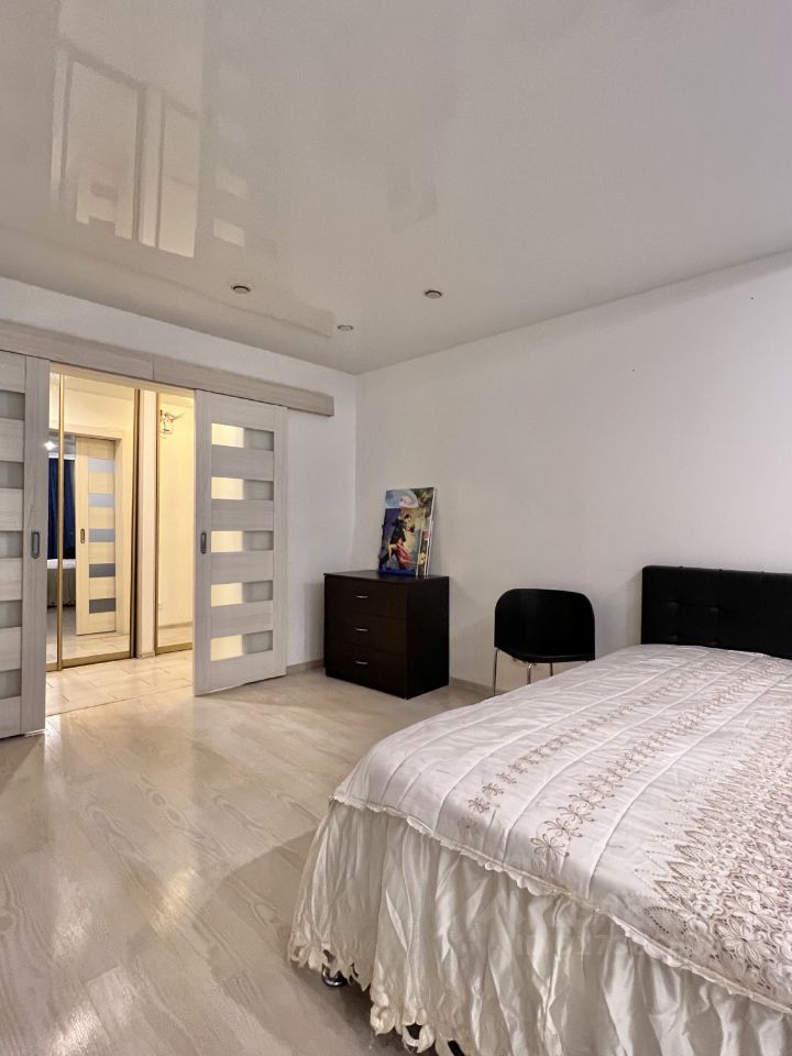 Хорошая квартира с большой спальней, широким коридором и большой кухней с выходом на лоджию. Окна во двор - тихая сторона.