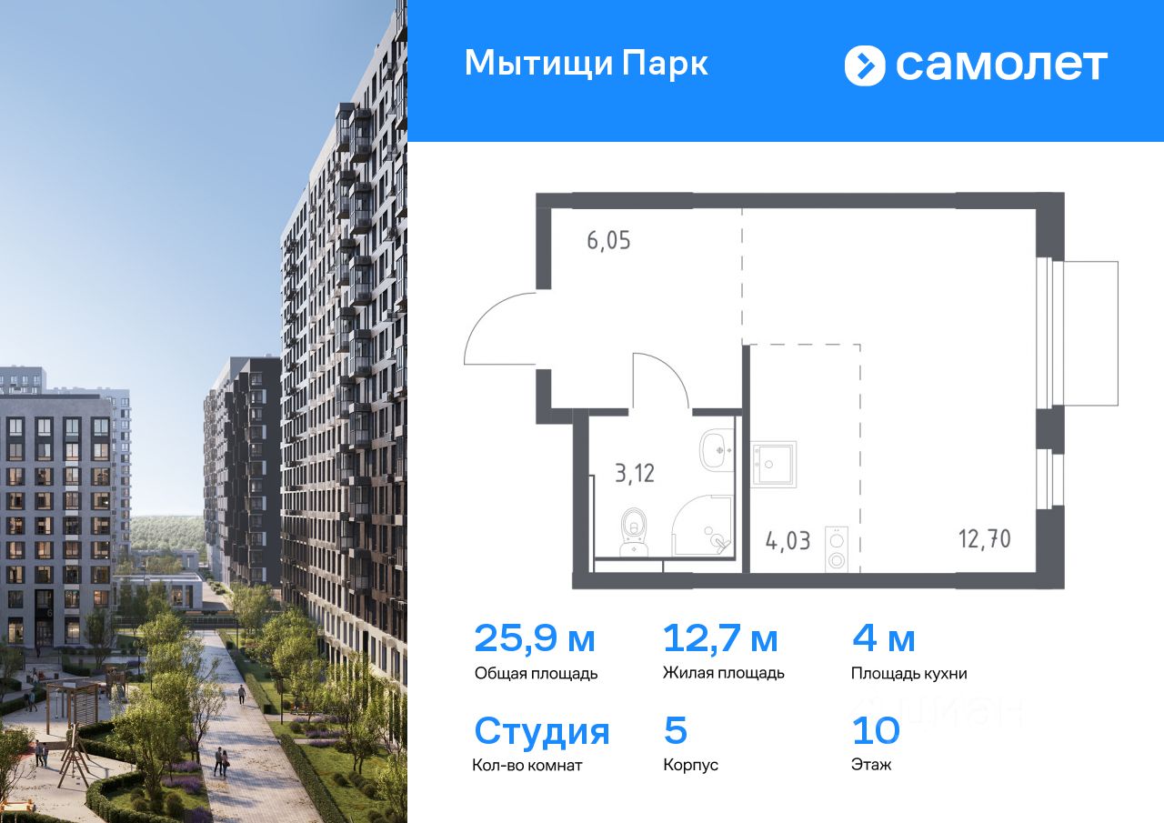 Предлагается квартира студия комфорт-класса 25,9 кв.м в корпусе 5 на 10 этаже, в ЖК ''Мытищи Парк''