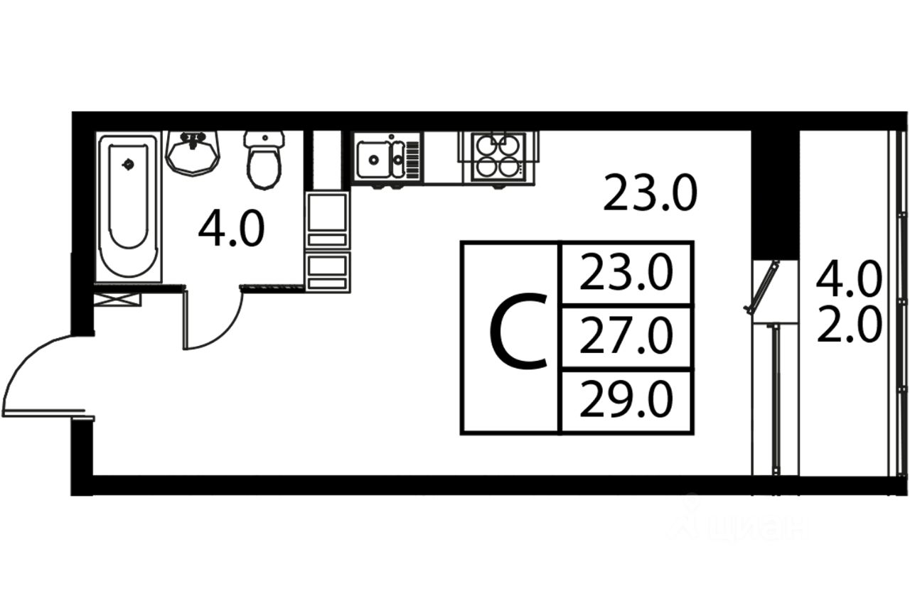 Общая площадь29 м2