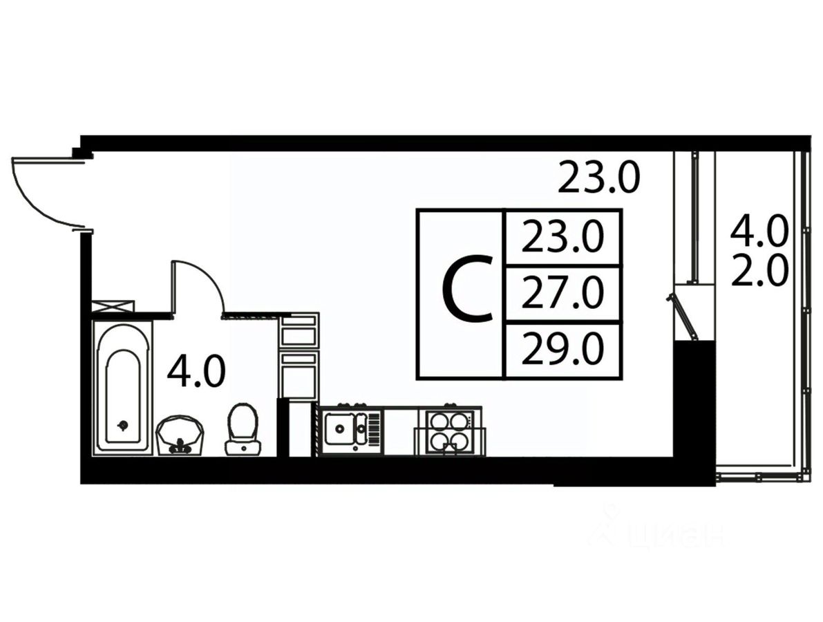 Общая площадь29 м2