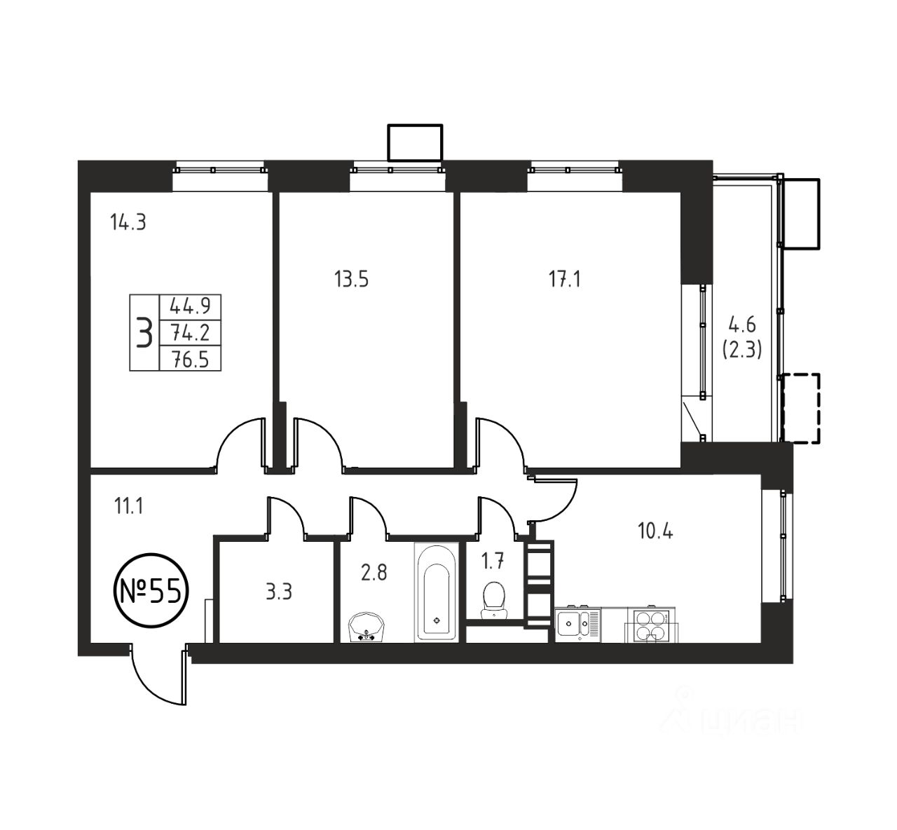 Общая площадь76,5 м2