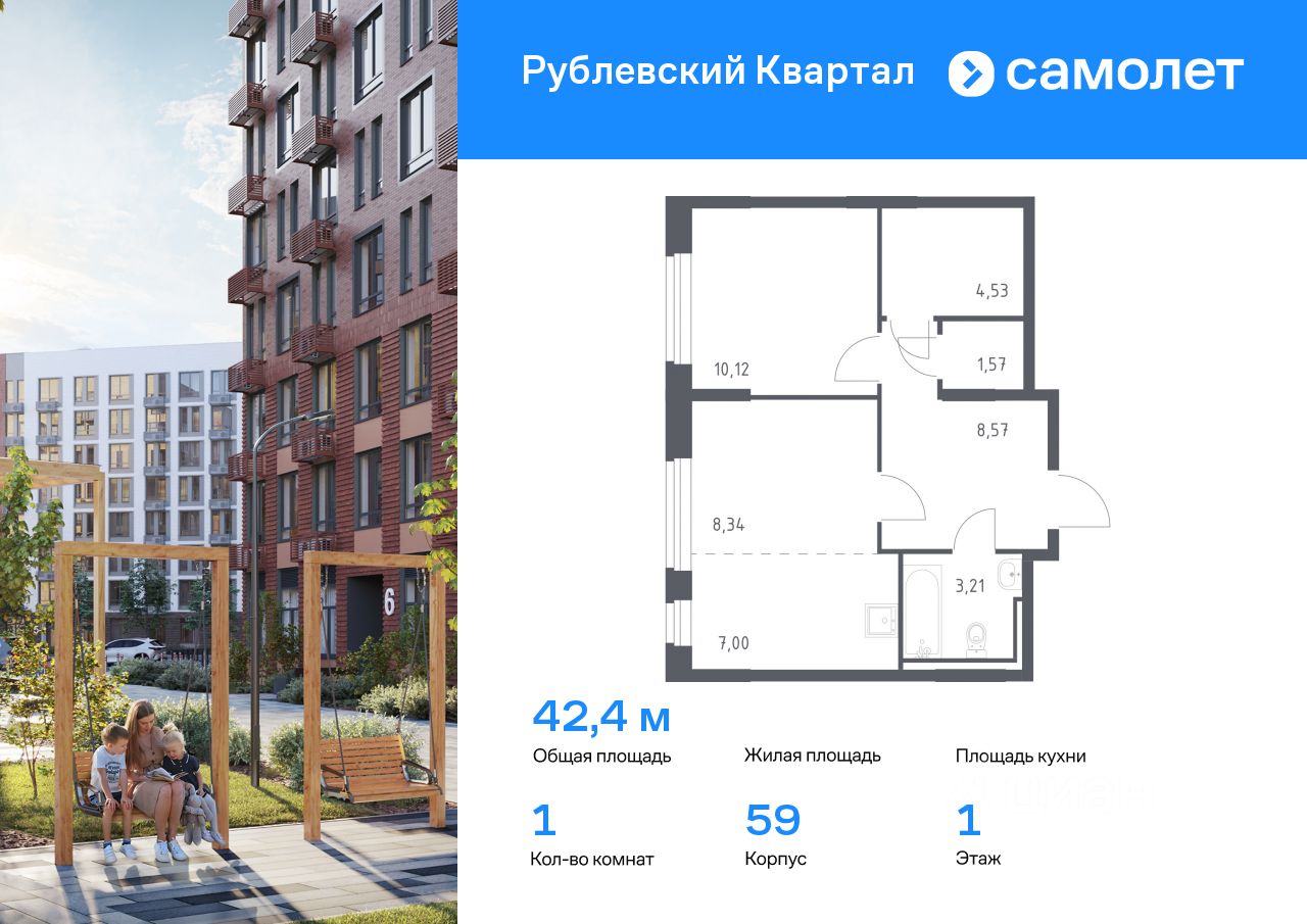 Предлагается 1-комнатная квартира комфорт-класса 42,4 кв.м в корпусе 59 на 1 этаже, в ЖК ''Рублевский Квартал'' Квартира с чистовой отделкой. Доступность дополнительных опций уточняйте у застройщика.