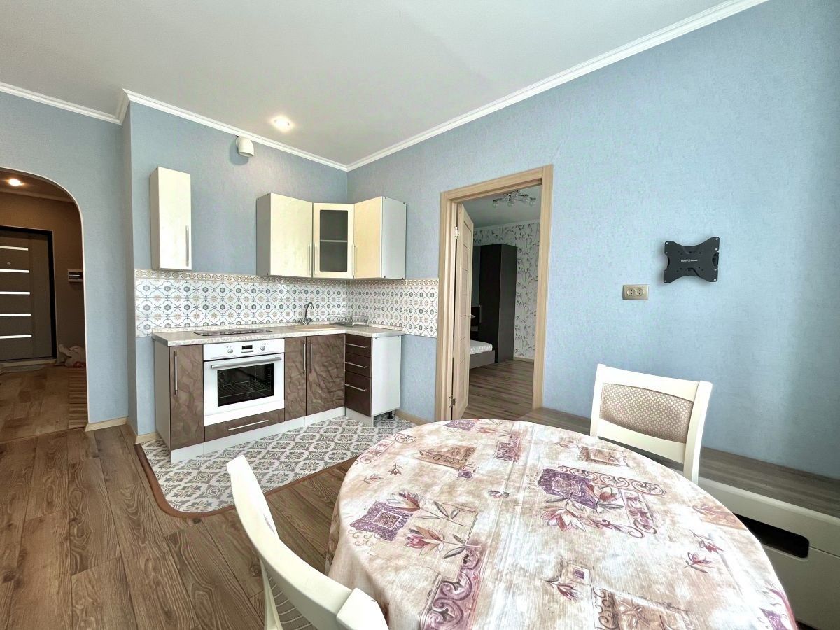 Квартира просторная с удачным зонированием. Современный ремонт выполнен в приятных спокойных тонах. Укомплектована всей необходимой мебелью и техникой, которая по желанию останется. Также для комфортного проживания летом имеется водонагреватель и кондиционер.