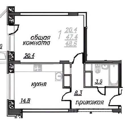Общая площадь47,6 м2