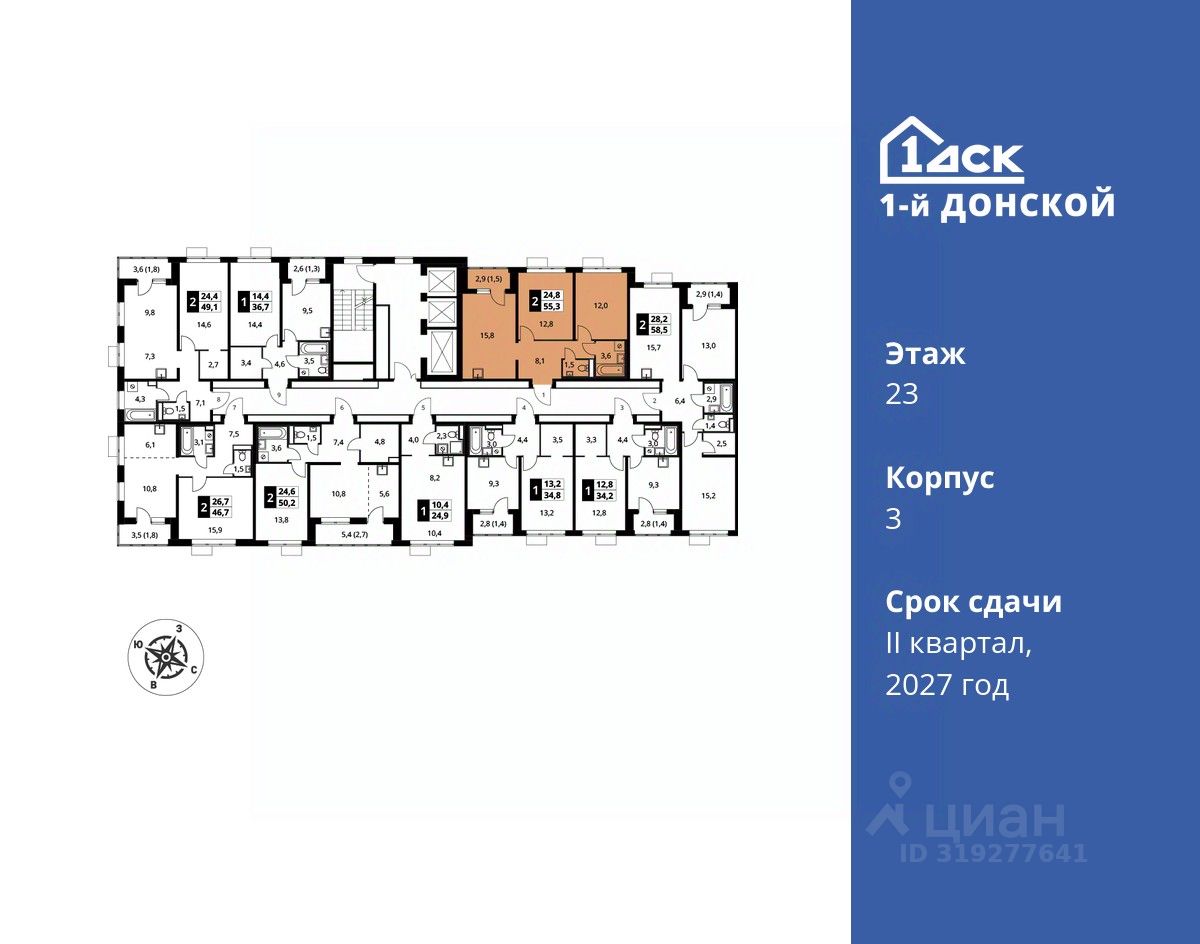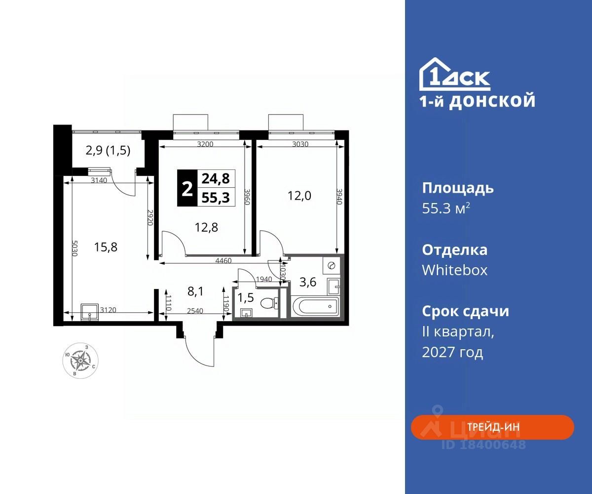 Максимальные скидки при 100% оплате. Trade-in вместо первоначального взноса - выгодно обменяйте вашу квартиру на новую! Прямая продажа от застройщика! Жилой Комплекс класса Комфорт плюс. Продаётся 2-к квартира номер 926 общей площадью 55.3 кв.м на 23-м этаже 24 этажного дома. Отделка Whitebox.