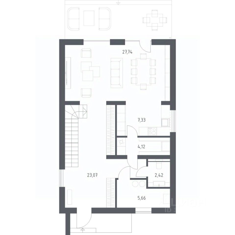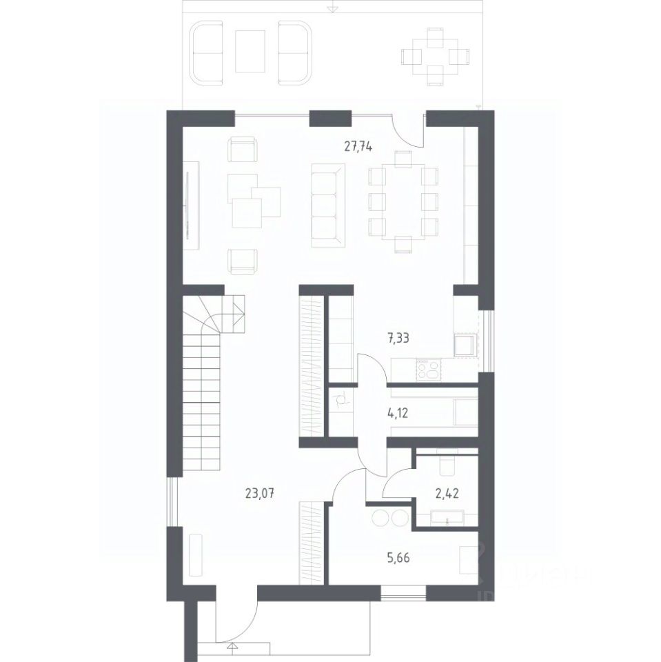 В базовую комплектацию включена металлическая входная дверь, двухкамерные стеклопакеты. Отсутствие межкомнатных перегородок позволит вам адаптировать пространство под себя.