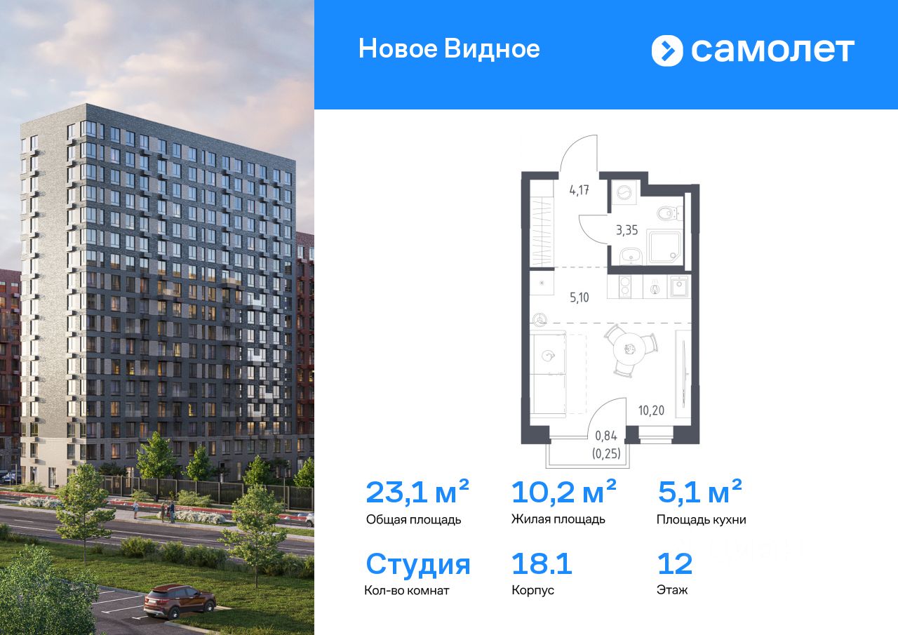 Предлагается квартира студия комфорт-класса 23,07 кв.м в корпусе 18.1 на 12 этаже, в ЖК ''Новое Видное'' Квартира без отделки. Доступность опции ''отделка'' и возможность комплектации мебелью и декором уточняйте у застройщика.