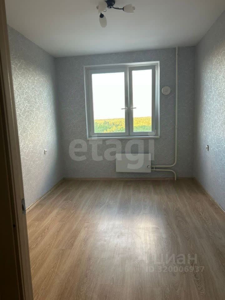 В одной спальне кровать и шкаф. Другая спальня пустая. В одной из комнат выход на застекленную лоджию. Окна квартиры выходят на лес. Напольные покрытия — плитка и ламинат.