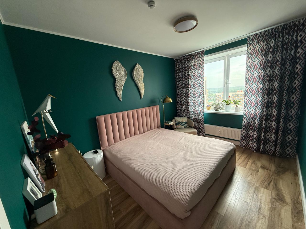 Вдохновляющий вид каждый день. — Окна детской — на зелёный двор и детский сад (вы всегда знаете, что ваш ребёнок рядом и в безопасности) — Гостиная и спальня — шикарная панорама города и завораживающие закаты, которыми приятно наслаждаться с балкона