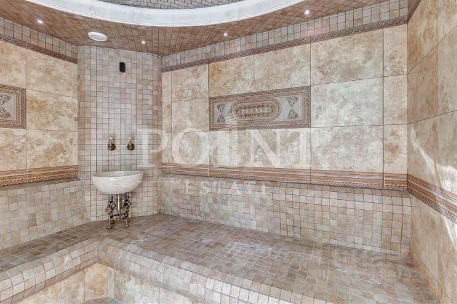 Лот: 41908. Загородный особняк в три уровня площадью 760 кв.м под ключ с мебелью располагается на участке 25 соток с дорогим ландшафтным дизайном в коттеджном поселке с удобной транспортной доступностью - ''Лайково-2''. На первом уровне (цоколь) находится помещение свободного назначения. Второй уровень занимает двусветная гостиная с камином, кухня, столовая, кабинет, спальня с гардеробной и санузлом, два санузла, СПА-зона с бассейном и хаммамом, кинотеатр, холл, несколько комнат для персонала, прихожая. Третий уровень отведен под четыре спальни с санузлами, холл, две гардеробные. Предусмотрен встроенный гараж на два машино-места. На придомовой территории имеется беседка и зона барбекю.
