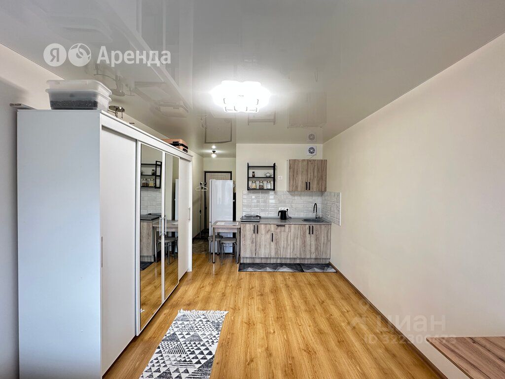 Сдаётся студия площадью 26 кв.м. с евроремонтом на 7 этаже в 9-этажном доме на срок от 11 месяцев. Из техники есть: Стиральная машина Холодильник