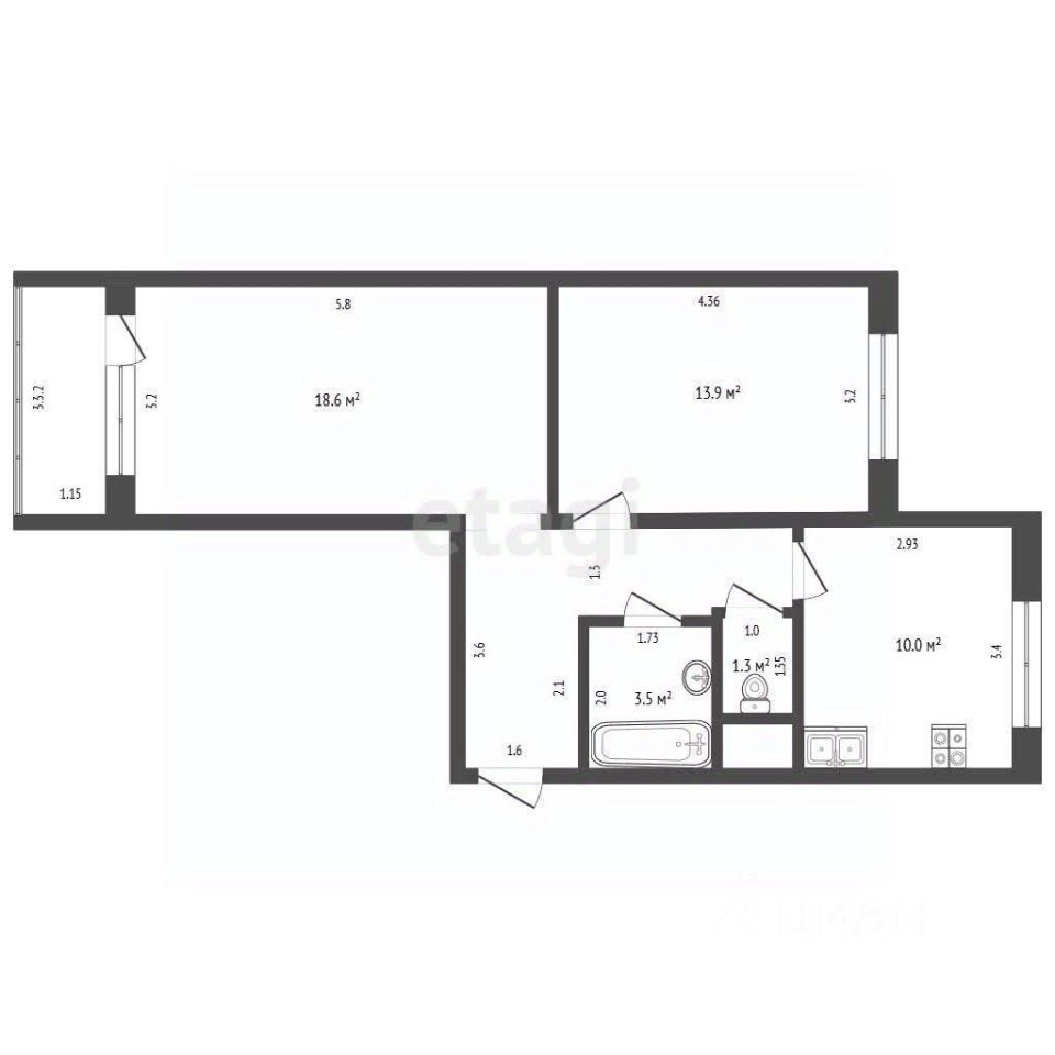 КВАРТИРА: Просторная 2-х комнатная квартира общей площадью 59 кв.м. Квартира распашонка (на обе стороны). В квартире сан.узел раздельный.