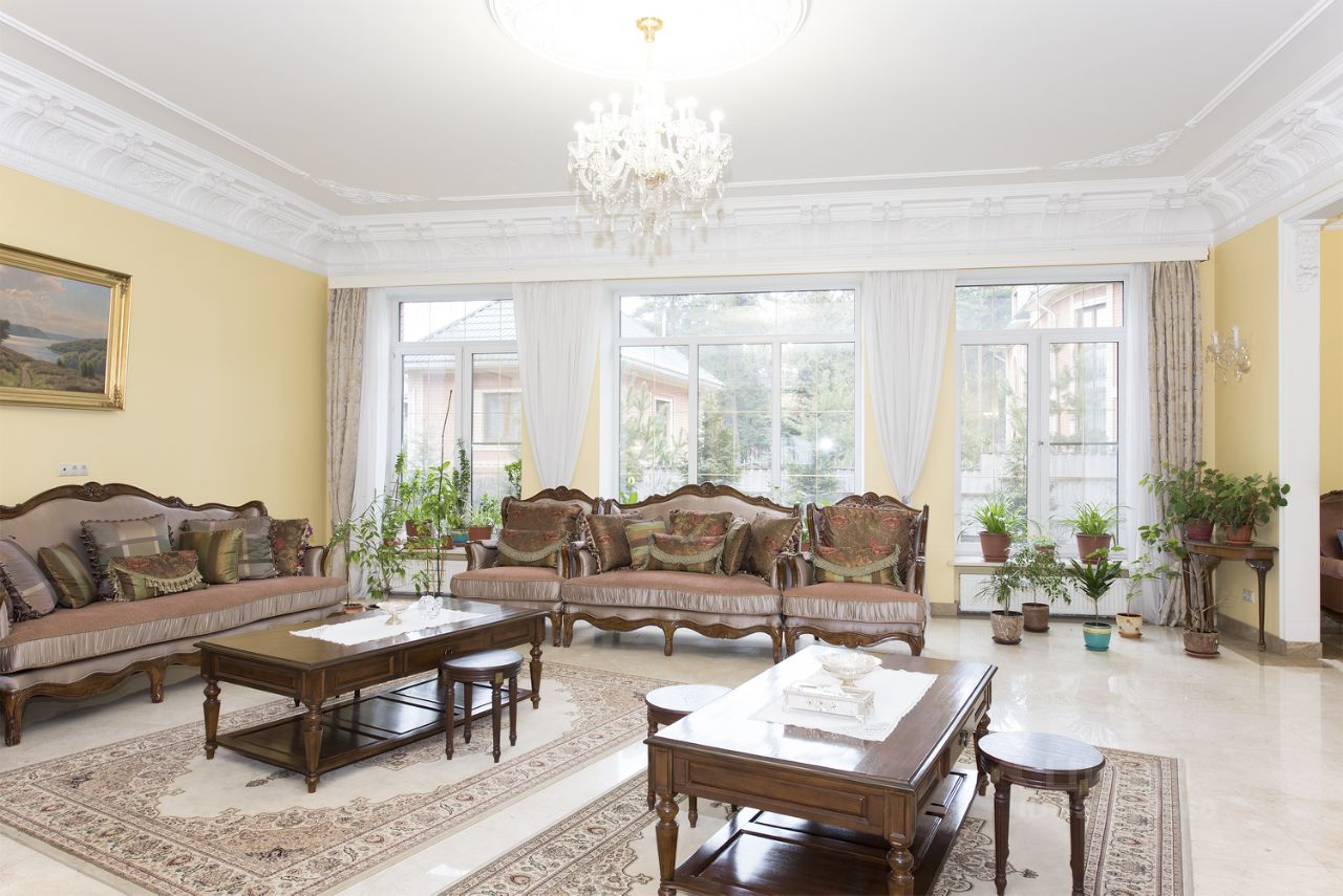 Цокольный этаж: сауна, 2 спальни для обслуживающего персонала, большой зал, гардеробная.