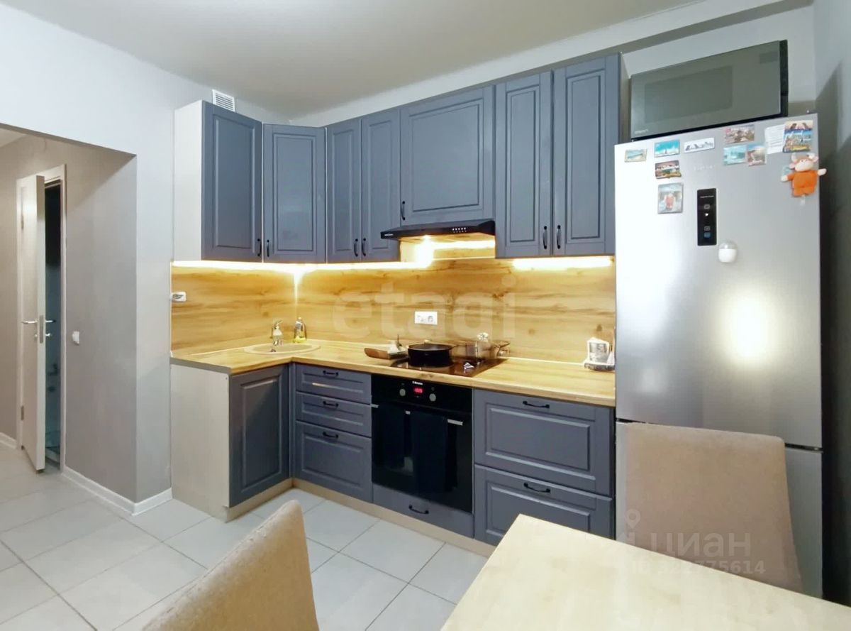 Продается просторная комнатная квартира в современном доме. Общая площадь квартиры составляет 54,4 кв. м, кухня — 19,9 кв. м, а высота потолков — 2,9 метра. Квартира находится на 6-м этаже 22-этажного дома, построенного в 2021 году.
