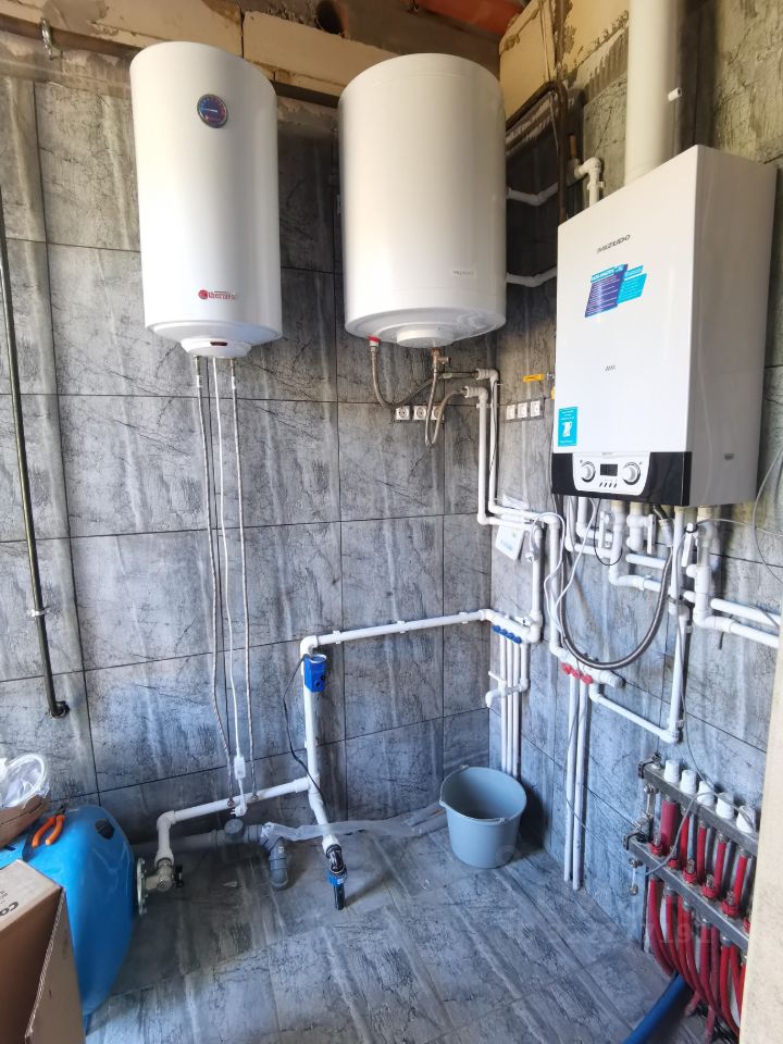 Коммуникации все заведены: По всей площади дома теплый пол. Электричество 15 кВт (3 фазы) проводка разведена, Вода скважина 45 м, Септик топаз на 6 чел. Все коммуникации подведены, подключены и разведены по дому. Газ в доме.