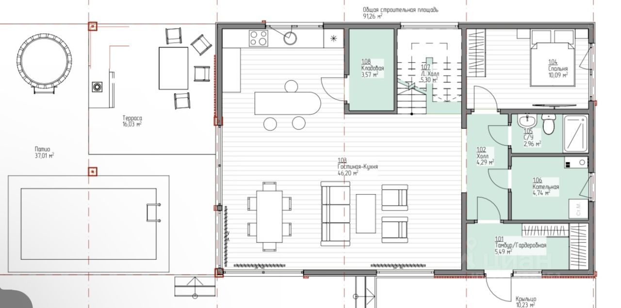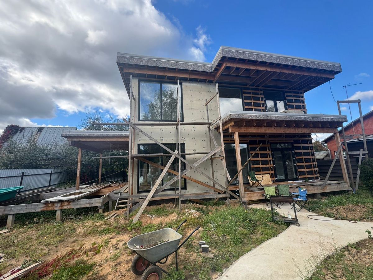 Дом каркасный, с применением современных технологий утепления пеноплексом, что обеспечивает отличную теплоизоляцию и экономию на отоплении в зимний период. Внутри дом подготовлен под чистовую отделку, что позволяет воплотить в жизнь любые дизайнерские решения и создать интерьер по своему вкусу.