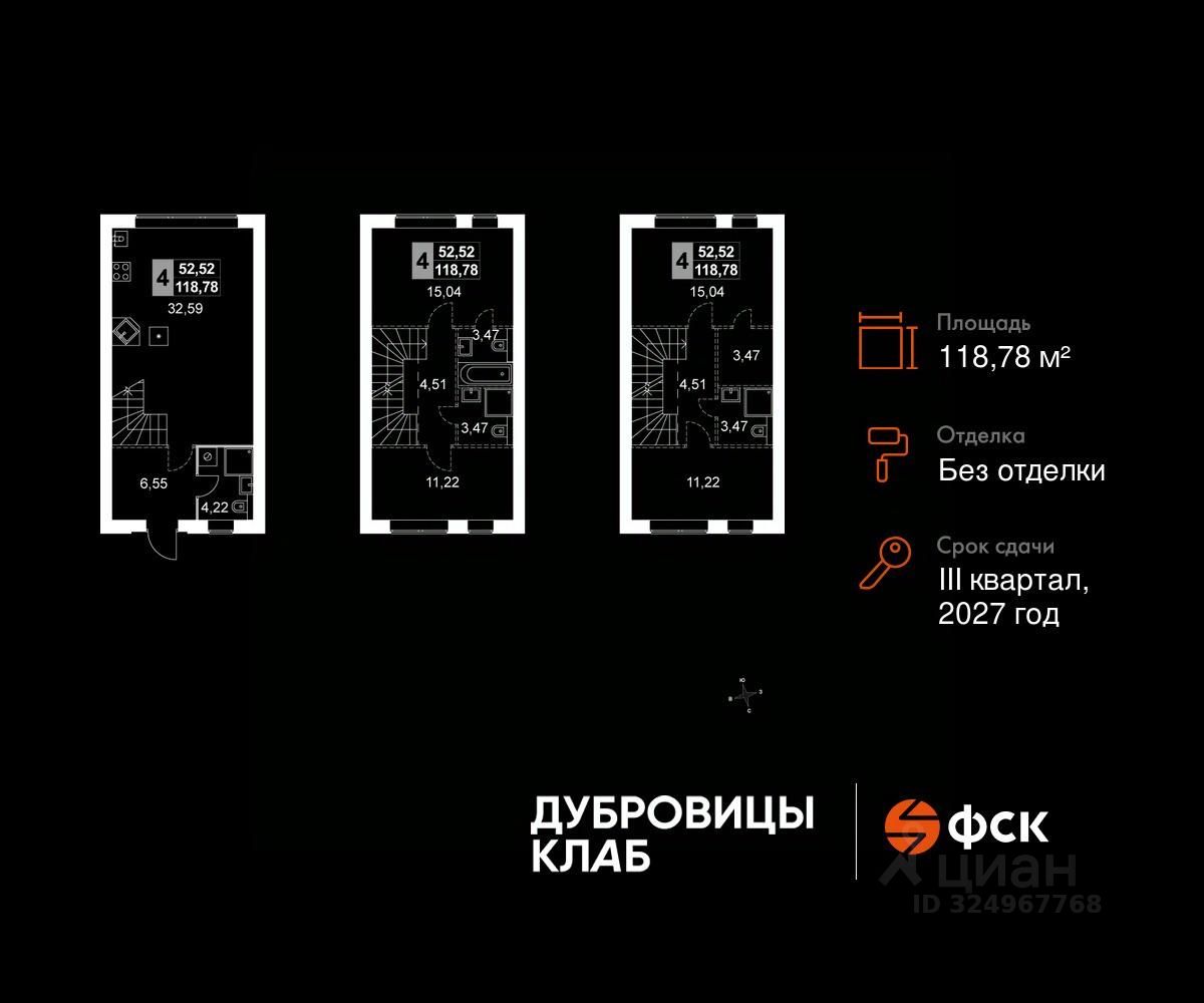 Прямая продажа от застройщика! Загородный жилой комплекс комфорт-класса. Продаётся 4-к таунхаус 8 общей площадью 118.78 кв.м. Без отделки.