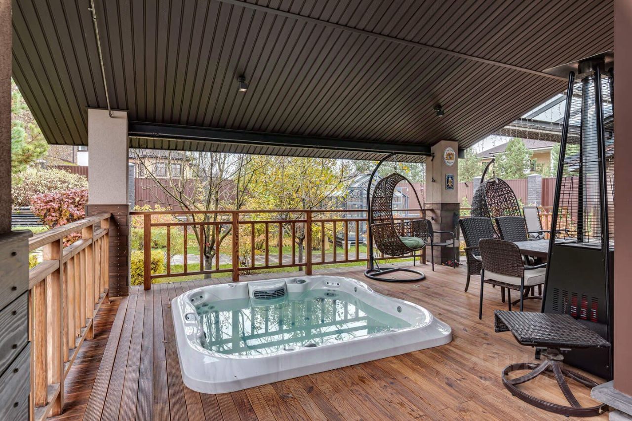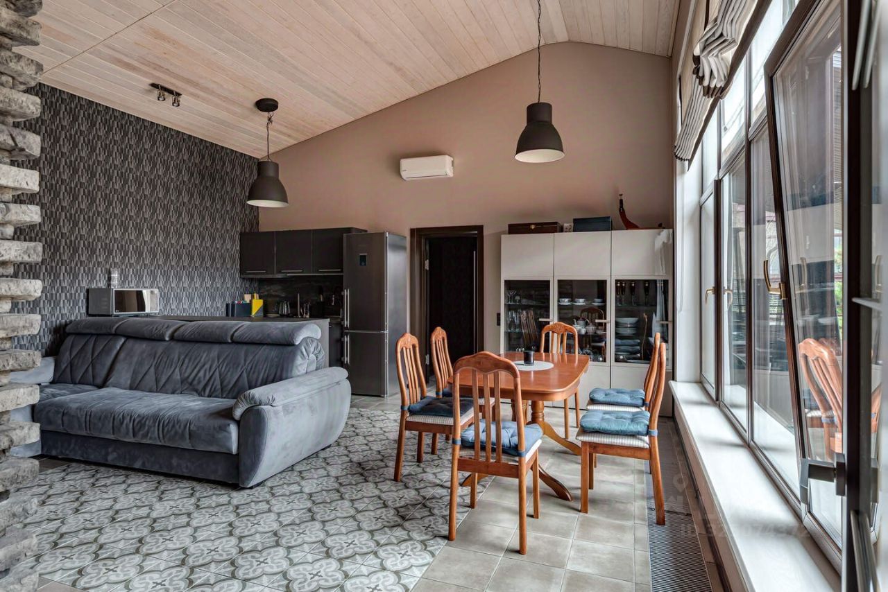 Гостевой дом 139 м2 круглогодичного проживания: 1 этаж: - Большая терраса на которой расположена зона бара, зона столовой, джакузи для круглогодичного использования - Душевая - Баня на дровах - Кухня- гостиная - Сан.узел - Спальня