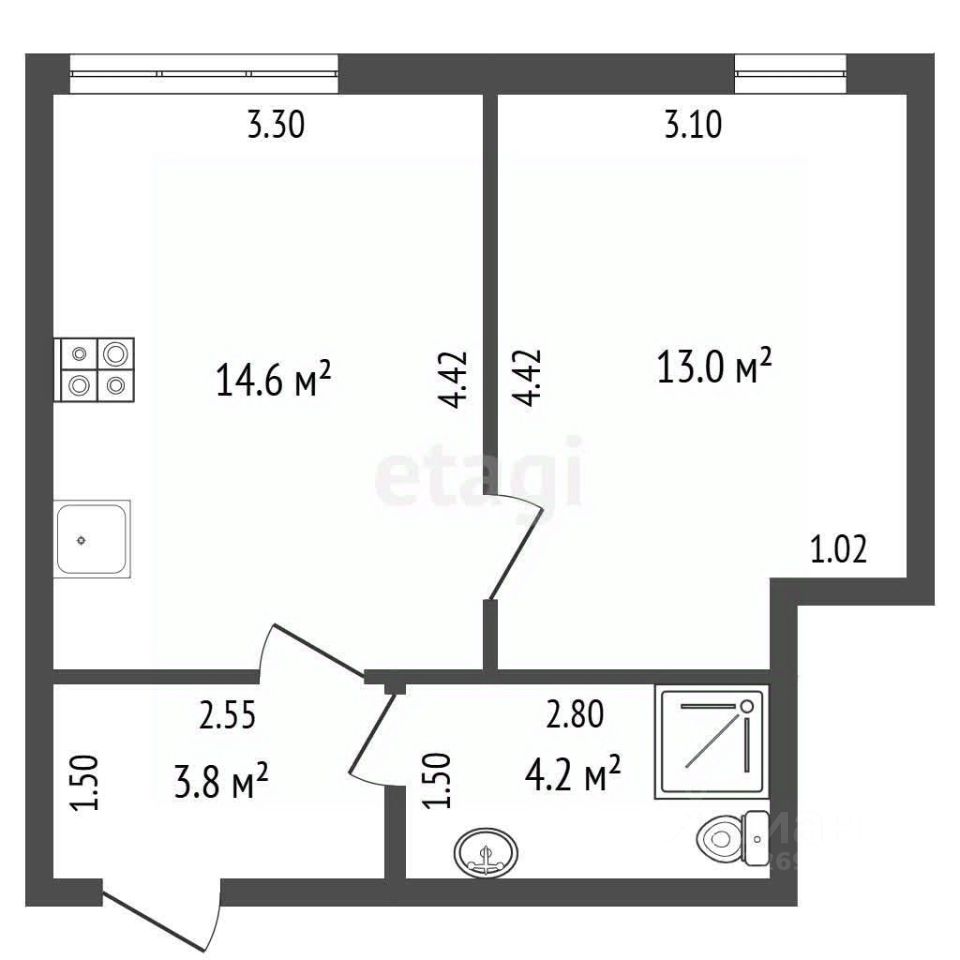 Лучшее предложение квартира евроформата с кухней-гостиной 13 метров и одной комнатой в ЖК ''СПАССКОЕ''