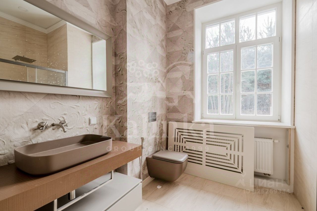 1-й этаж: гостиная, кухня, столовая, кабинет, сигарная комната, 3 спальни, 4 санузла, 2 гардеробные, постирочная. 2-й этаж: главная спальня с двумя гардеробными и двумя санузлами, 2 спальни со своими гардеробными и санузлами.