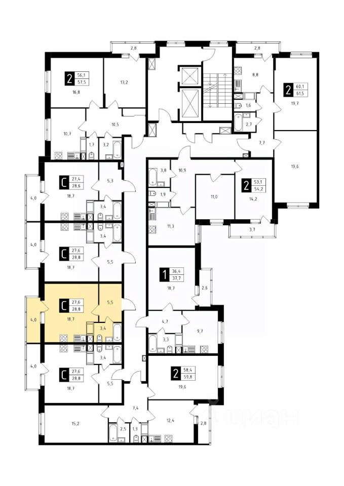 Продаётся студия в строящемся доме (Корпус 1), срок сдачи: 1-кв. 2026, общей площадью 28.80 кв.м., на 14 этаже.
