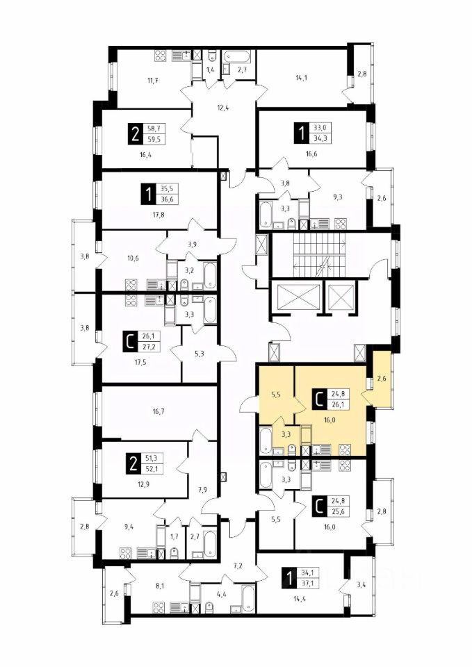 Продаётся студия в строящемся доме (Корпус 1), срок сдачи: 1-кв. 2026, общей площадью 26.20 кв.м., на 2 этаже.