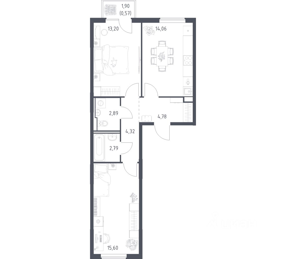 Общая площадь58,21 м2