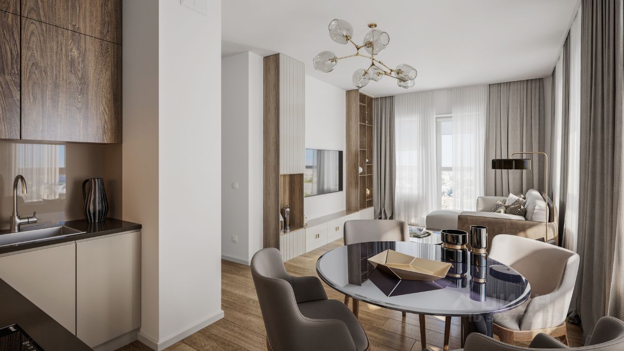 Застройщик сдает квартиры с отделкой в нескольких вариантах: предчистовая, готовая или вариант без нее. Последний подойдет тем, кто хочет создать свой уникальный интерьер и ничем себя не ограничивать. А если не хочется тратить время на ремонт, можно выбрать опцию — с отделкой. Перед тем как отдать ключи, застройщик установит натяжные потолки, поклеит обои под покраску, положит ламинат светлых тонов, а в санузлах — керамическую плитку и керамогранит.